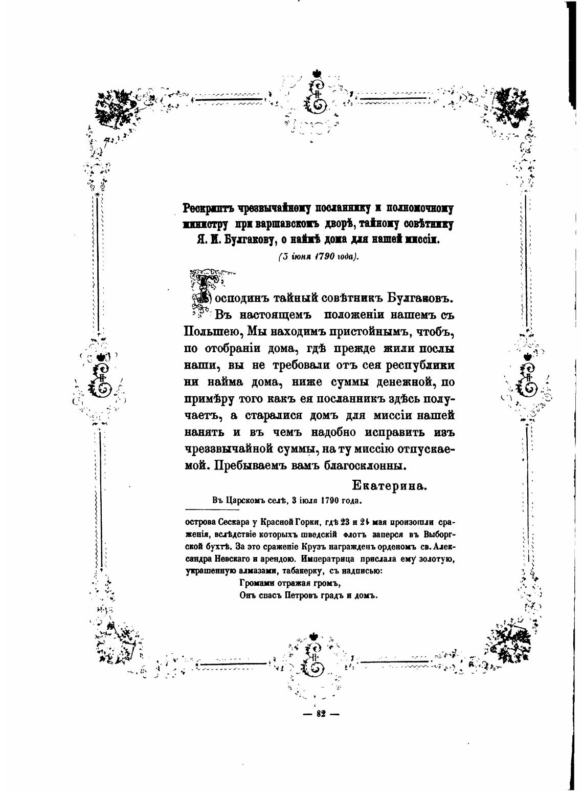 Въ Царомъ сел, 3 ik)M1 1790 года.