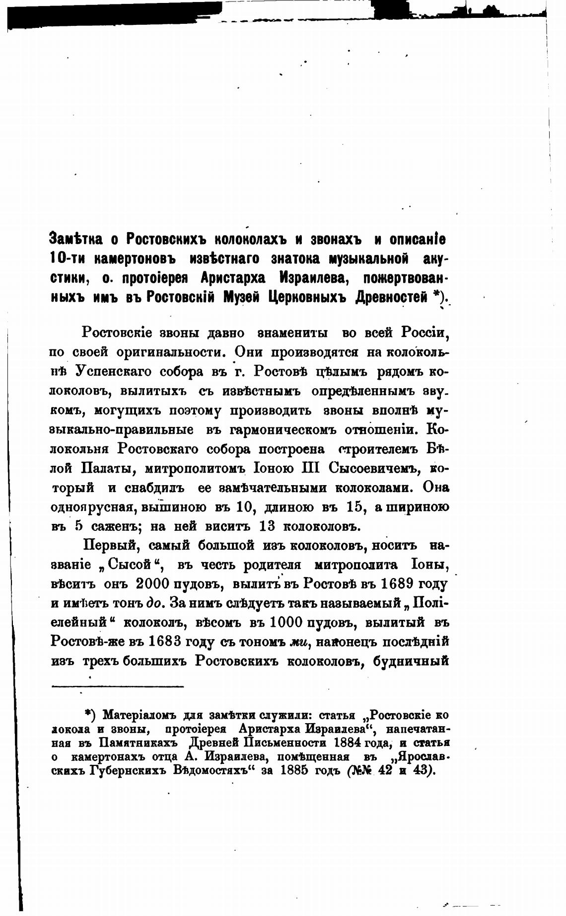 Зам%тна о Ростовскихъ колонолахъ и звонахъ и описан1е
