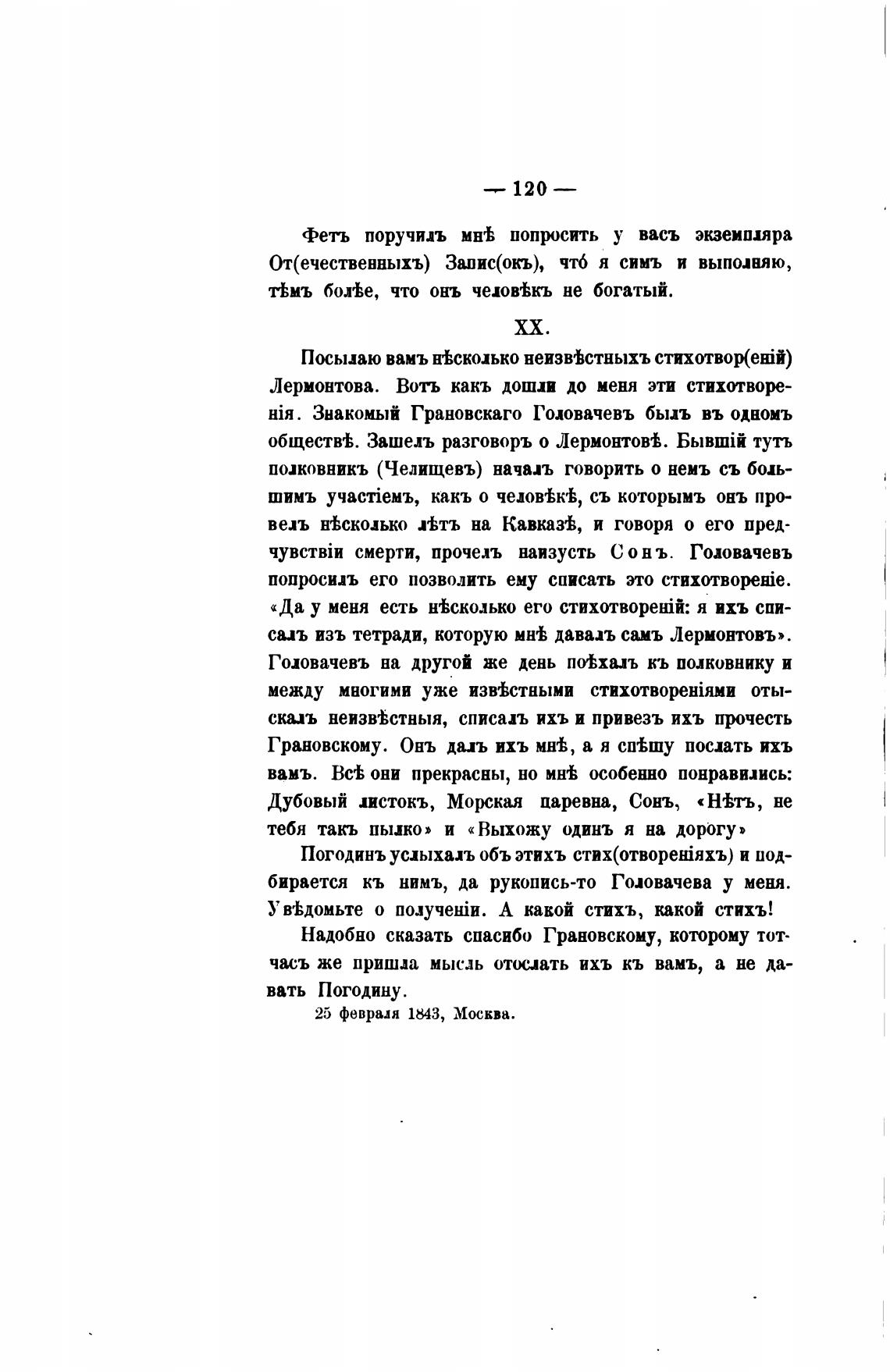 25 февраля 1843, Москва.