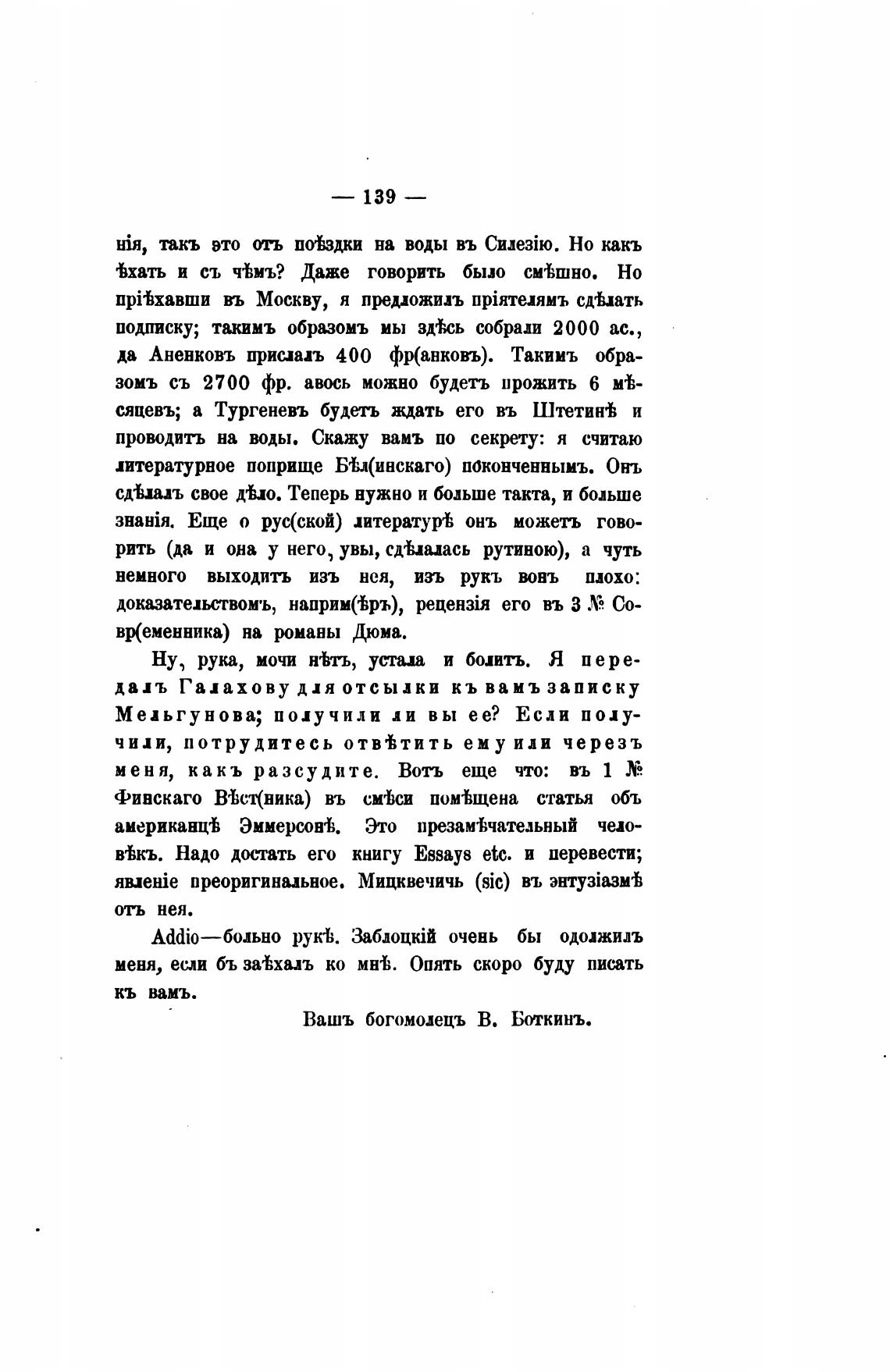 Вашъ богомолецъ В. Боткинъ.