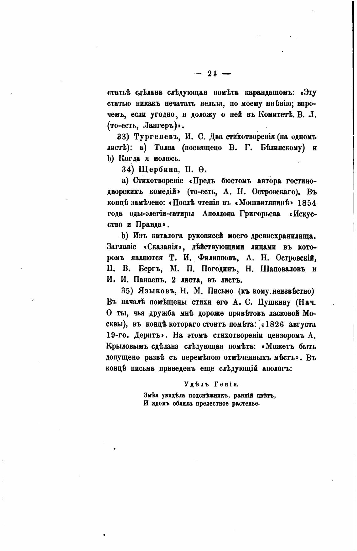 35) Языковъ, Н. М. Письмо (кь кому.неизв'Всгно)