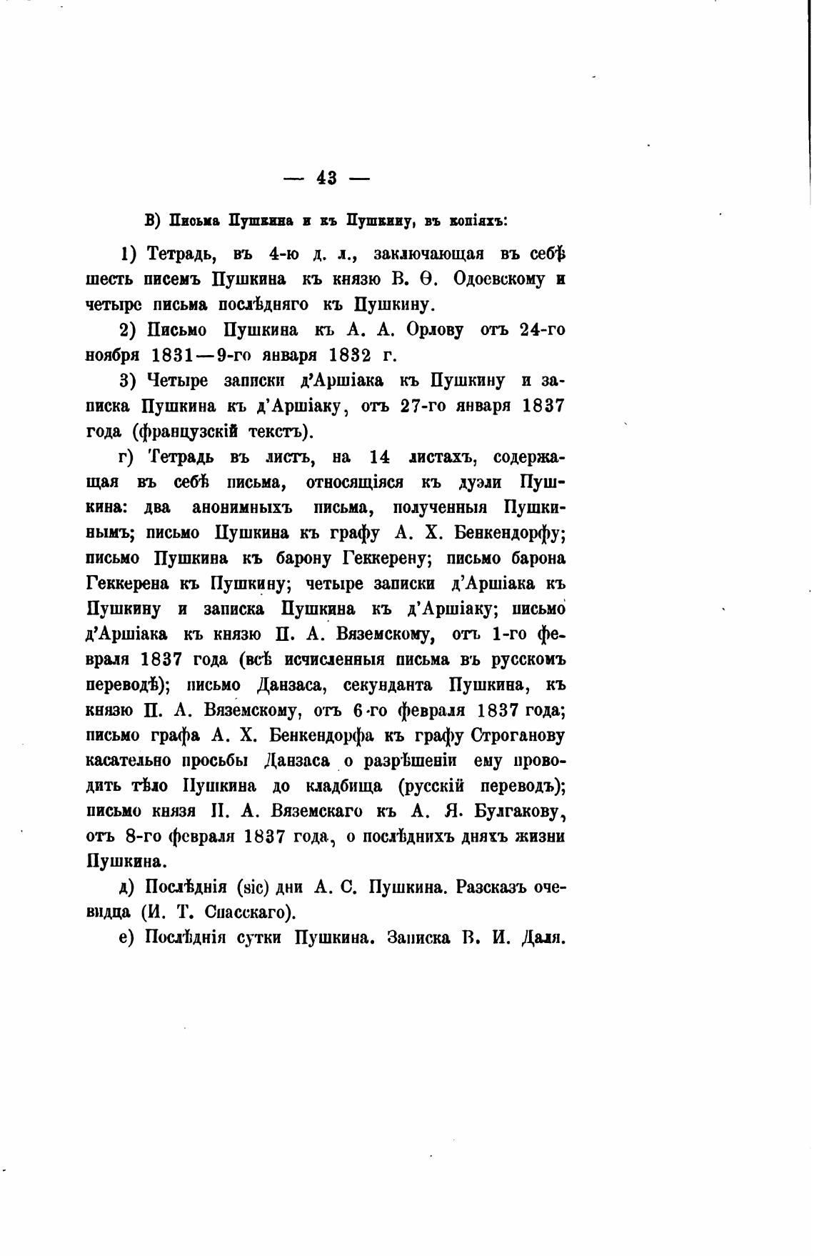 В) Письма Пушкина и въ Пушкину, въ