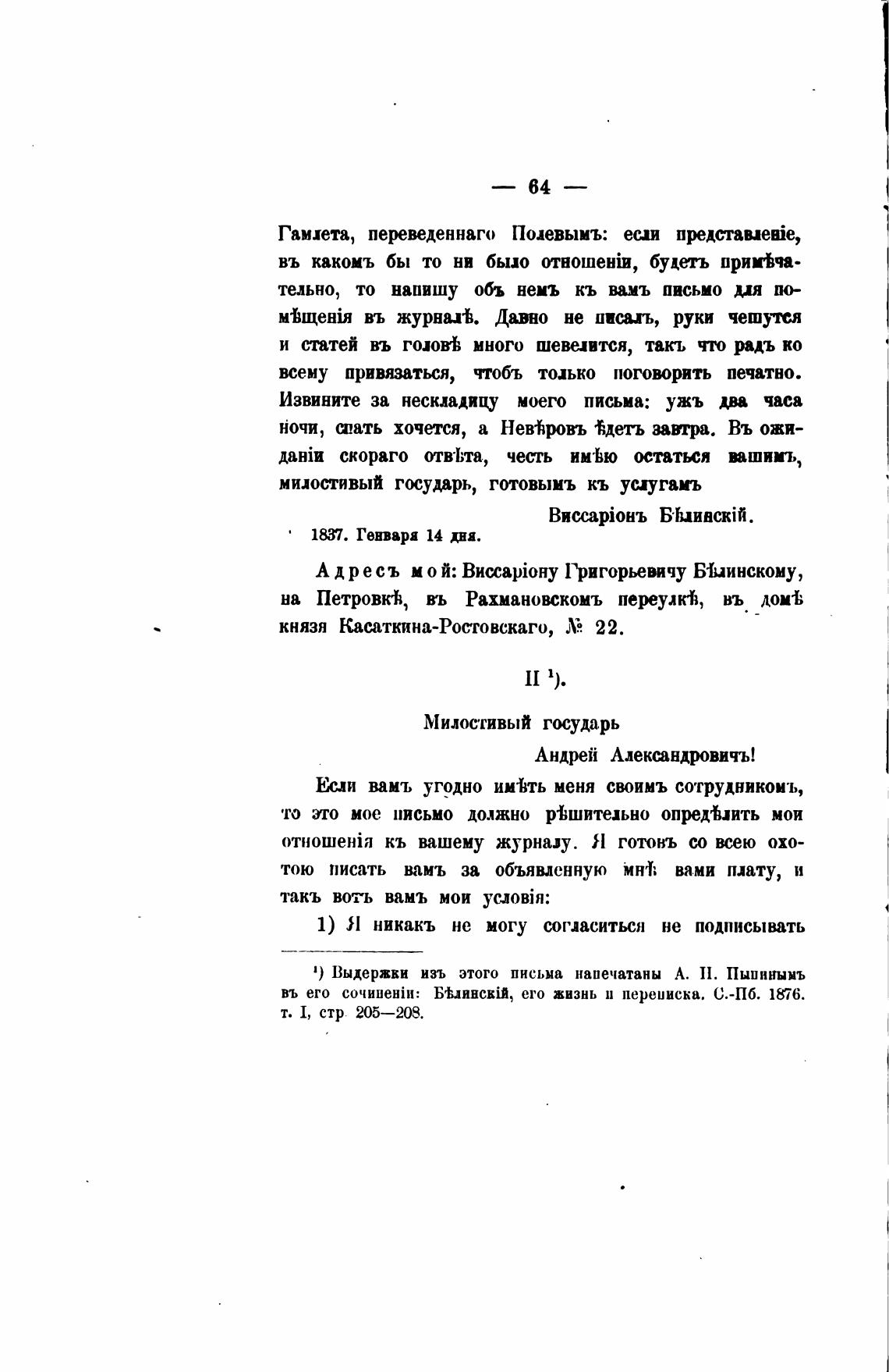 1) Выдержки изъ этого письма напечатаны А. 11. Пыпижынъ