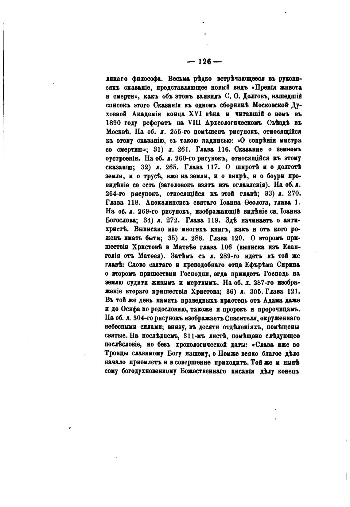 0Hie втораго пришеств1я Христова; 36) л. 305. Глав 121.
