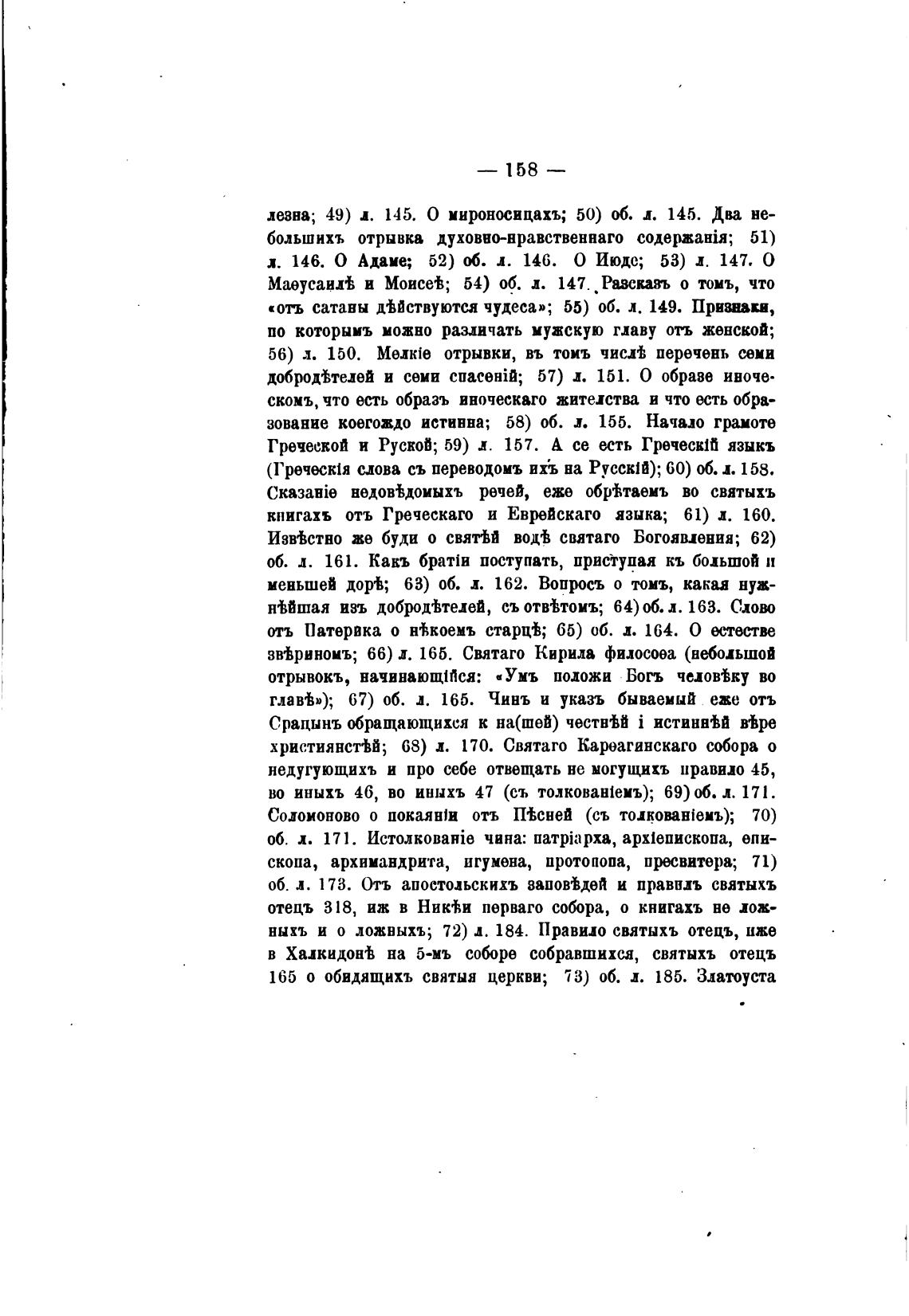 (Греческ1я слова съ переводоиъ их;ь на РусскШ); 60) л. 158.