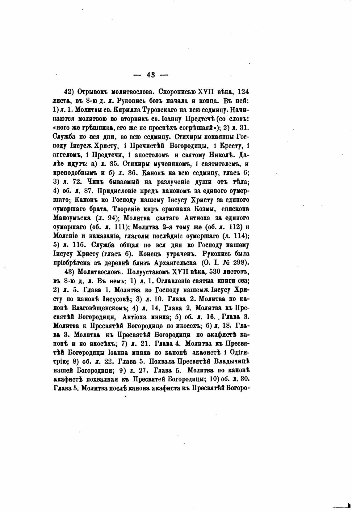 43) Мохитвословъ. Полууставомъ XVII йка, 530 листовъ,