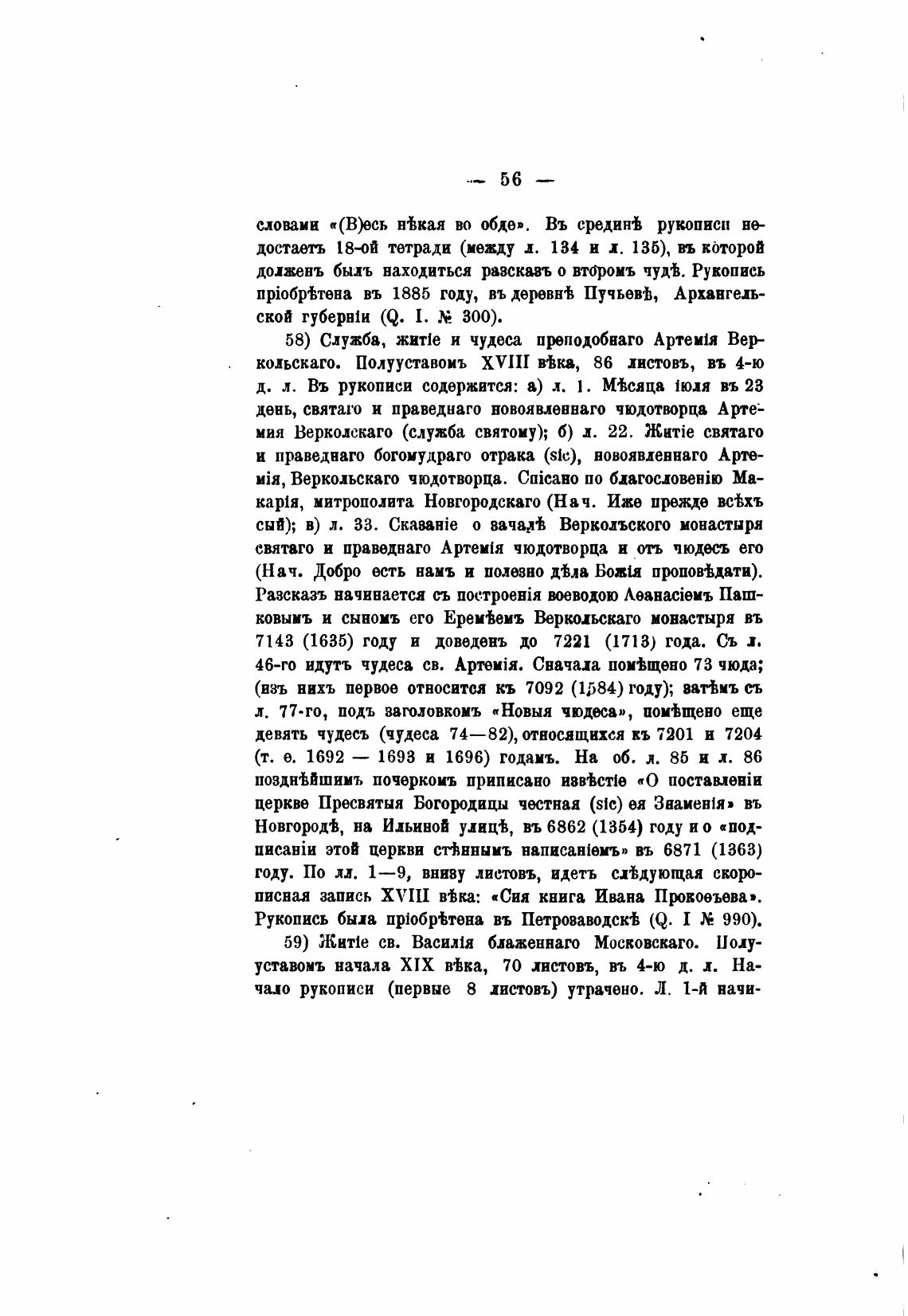 58) Служба, жит1е и чудеса пуподобнаго Артеи[я Вер-