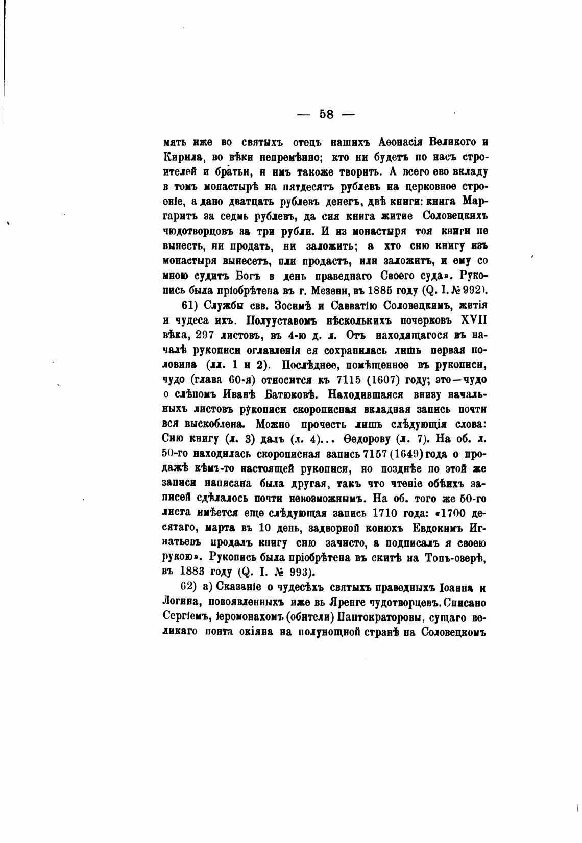 гаритъ за седиь рублевъ, да едя книга житие Соловецкихъ