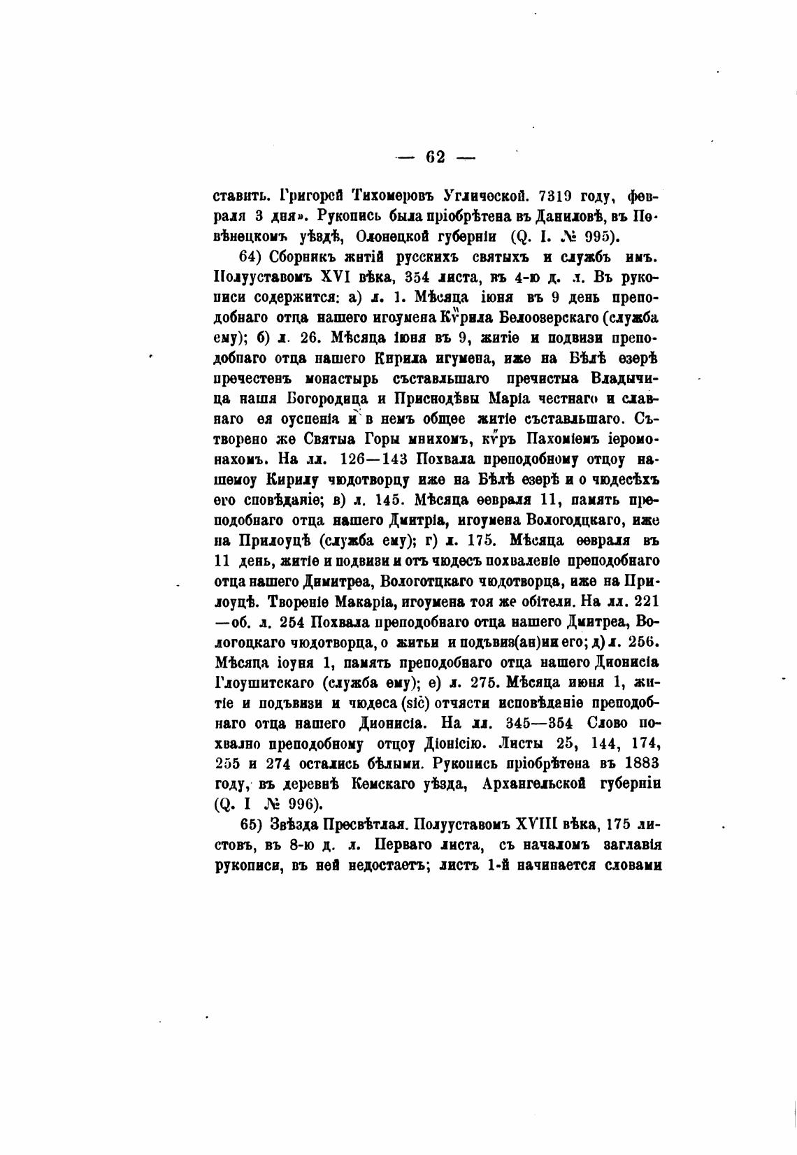 64) Сборникъ русскихъ святыхъ и службъ имъ.