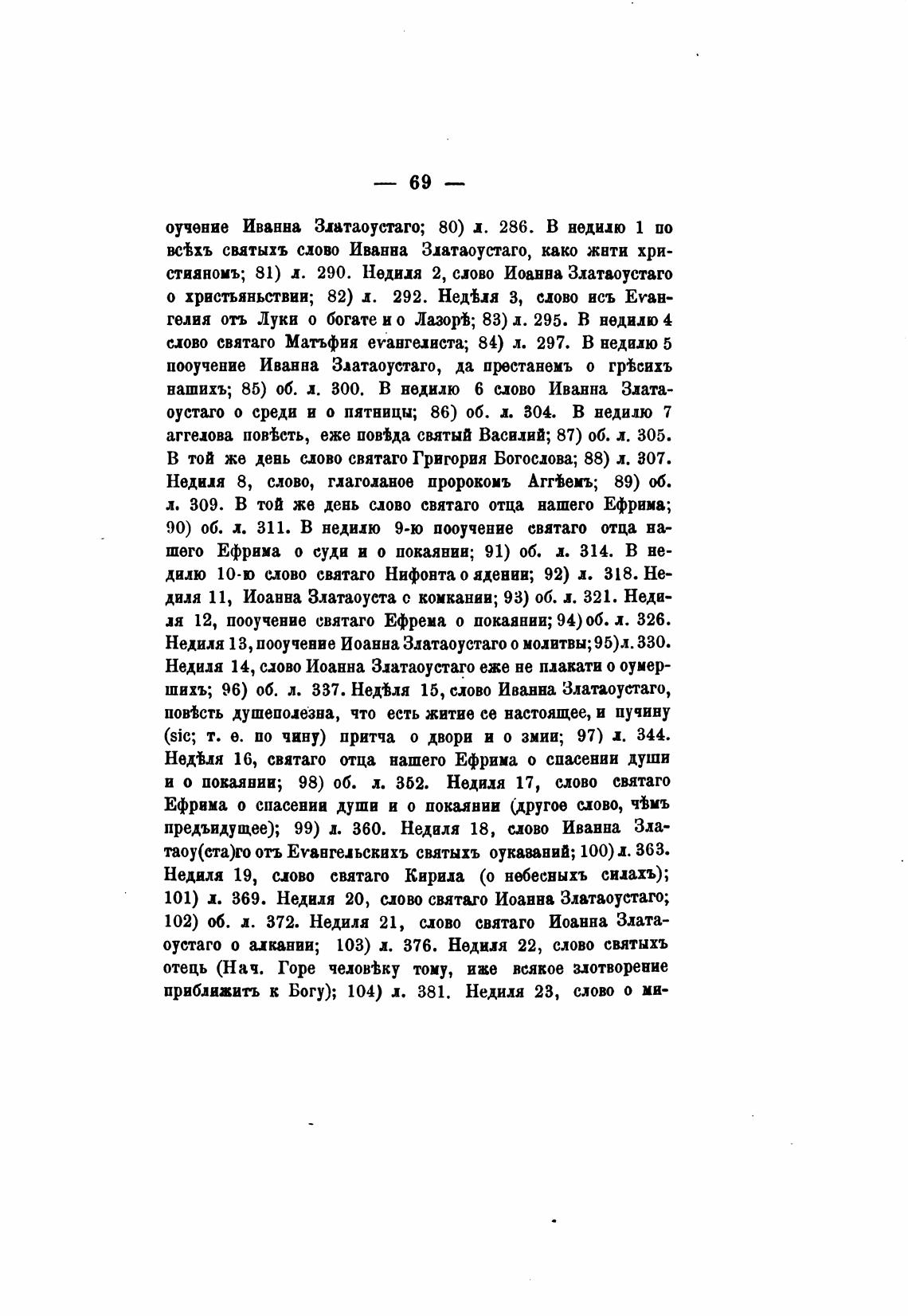 стианомъ; 81) л. 290. Недида 2, ново Иоанна Златвоустаго