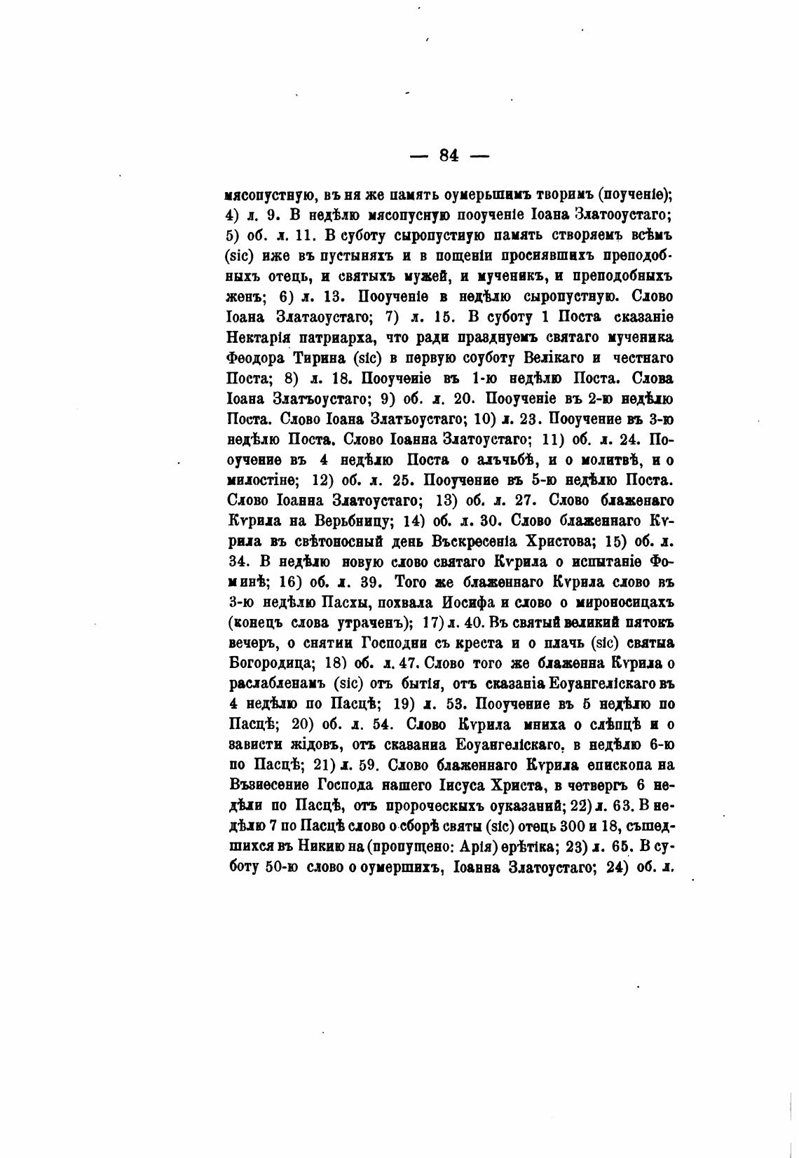 нехЬлю Поста. Слово Иоанна Златоустаго; 11) об. л. 24. По-