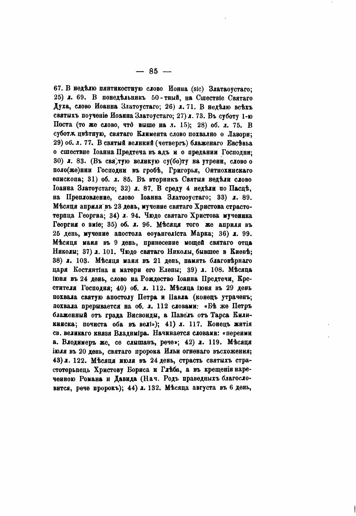 1оанна Зптоуетаго; 32) д. 87. В срду 4 иедьи по Пас:Щ