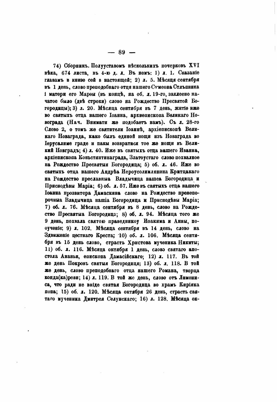74) Сборвикъ. Полууставомъ н±скодькихъ почерковъ XVI