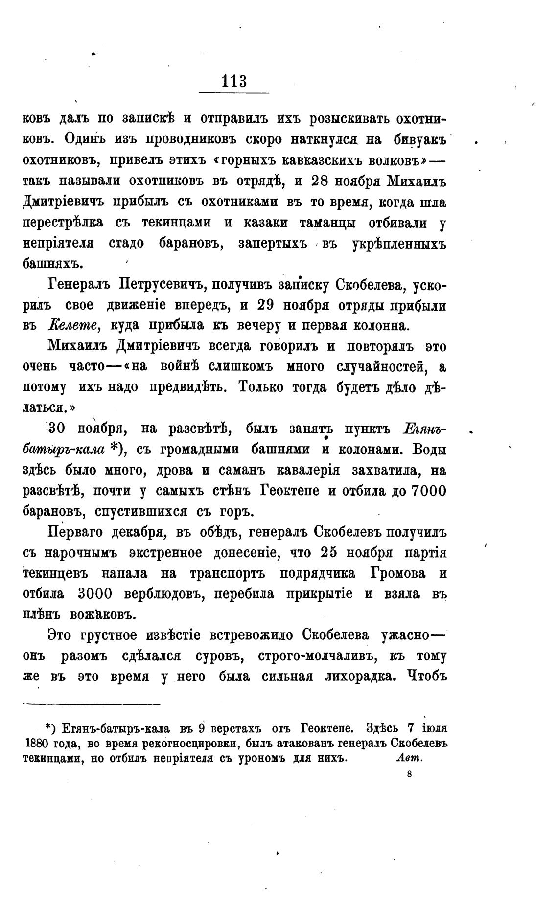 1880 года, во время рекогносцировки, быдъ атакованъ генераль Скобелевъ