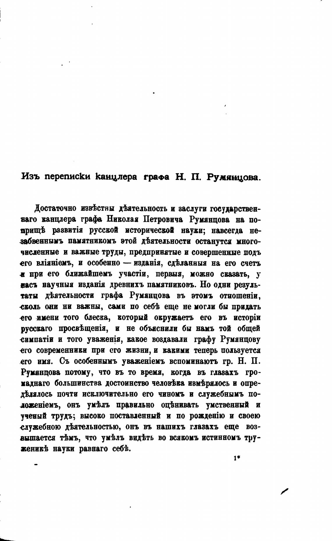 Изъ переписКи Канцлера гр•а Н. П. Румянцои.