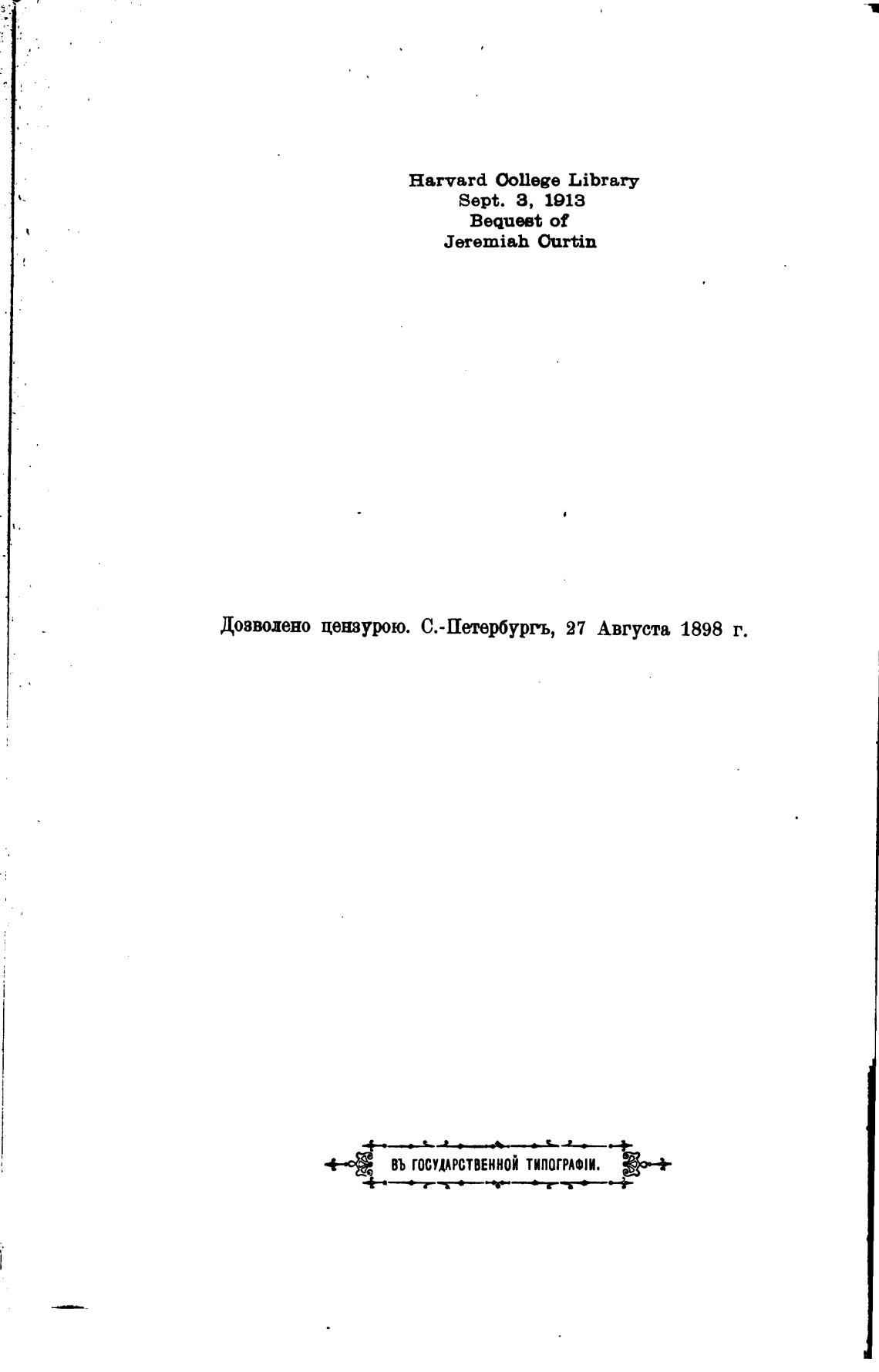 Дозволено цензтю. С.-Петербуррь, 27 Августа 1898 г.