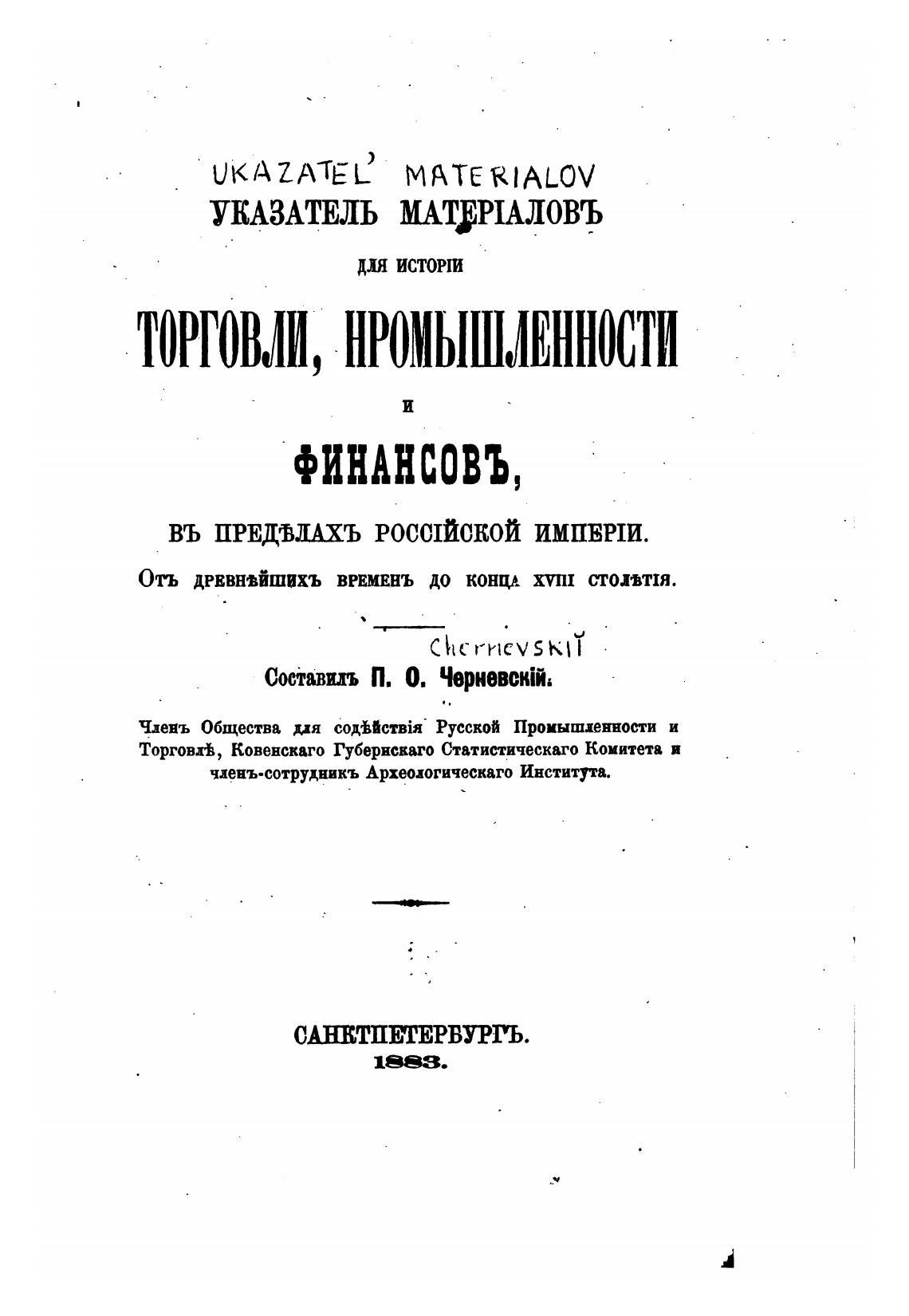 Составилъ П. О. Черневс'"й,