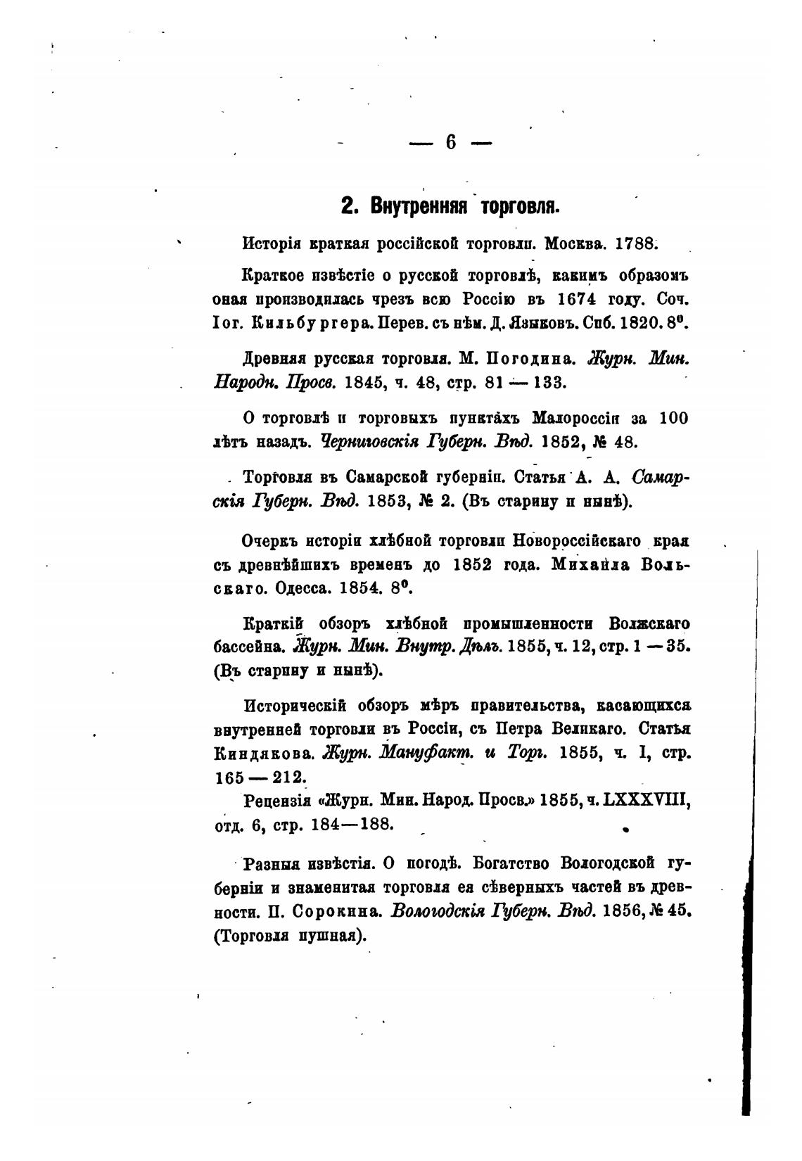 внутренней торговли въ Росс[и, съ Петра Великаго. Статьа