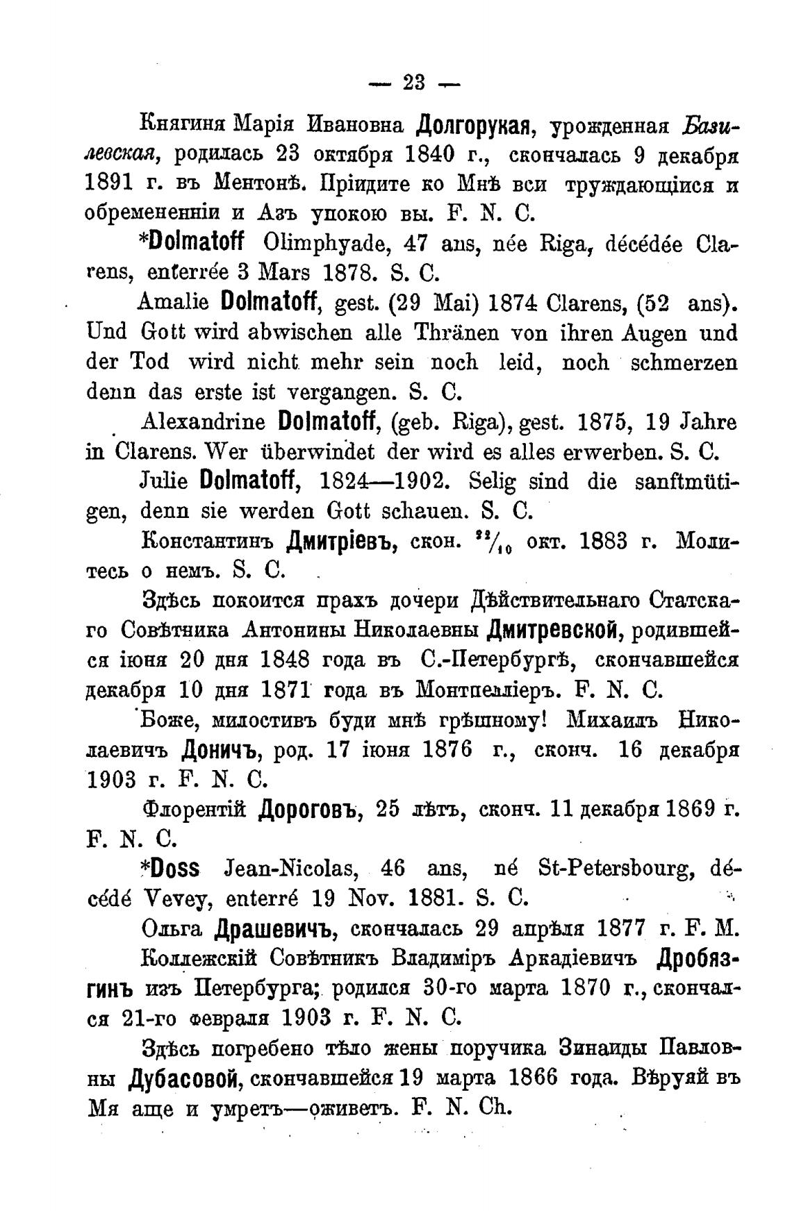 Ольга Драшевичъ, скончалась 29 апрвдя 1877 г. Е. М.