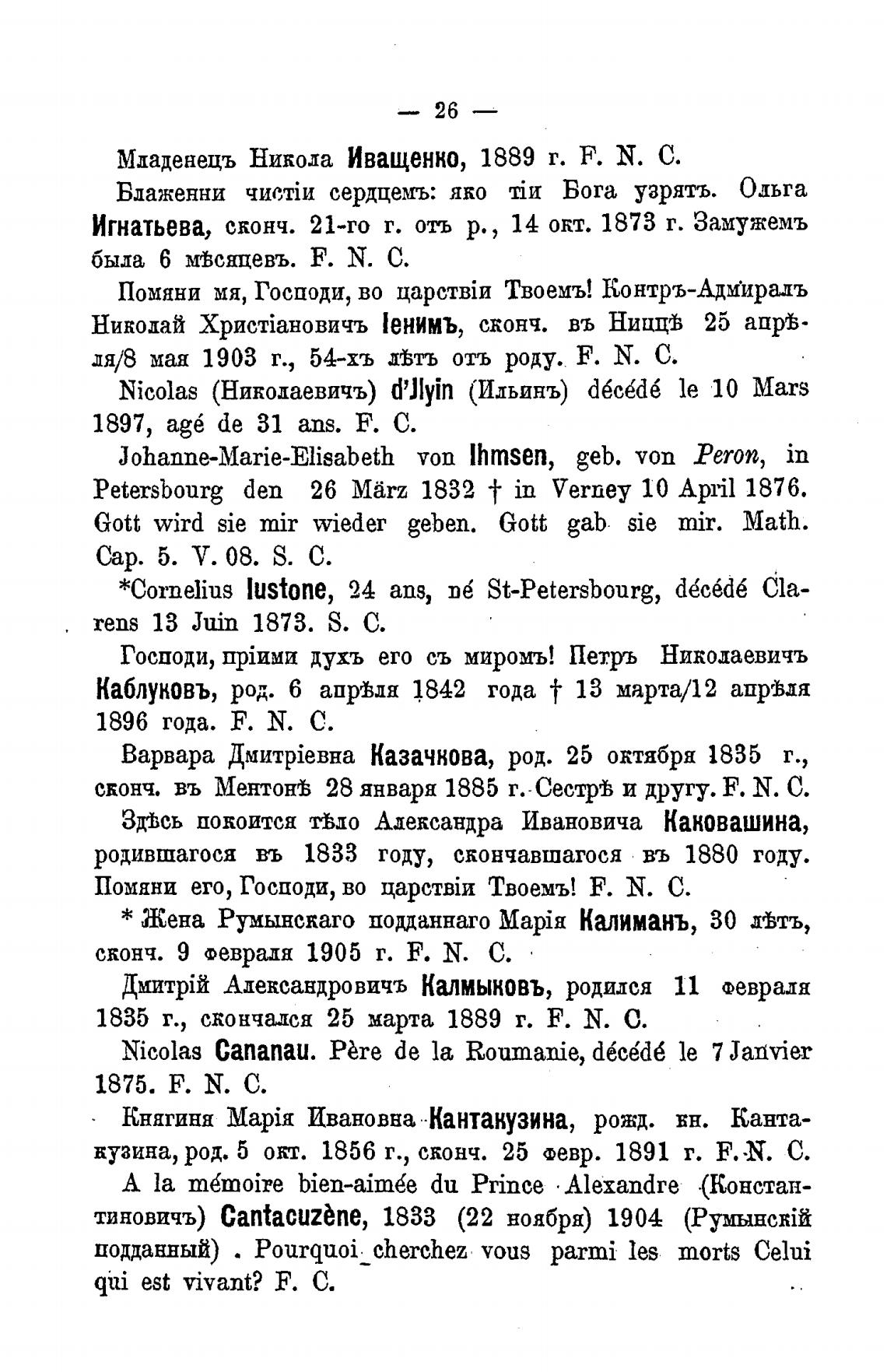 1835 г., скончался 25 марта 1889 г. F. N. С.