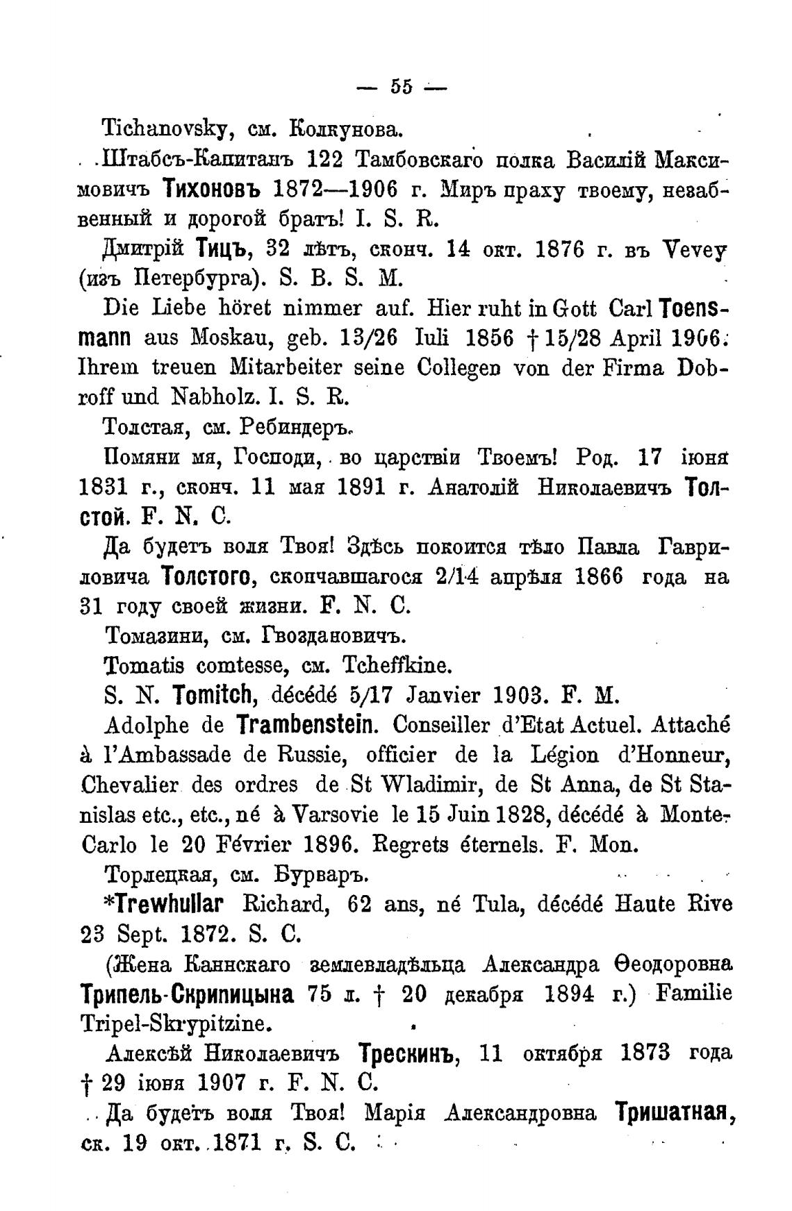 Тицъ, 32 двтъ, сконч. 14 окт. 1876 г. въ Vevey