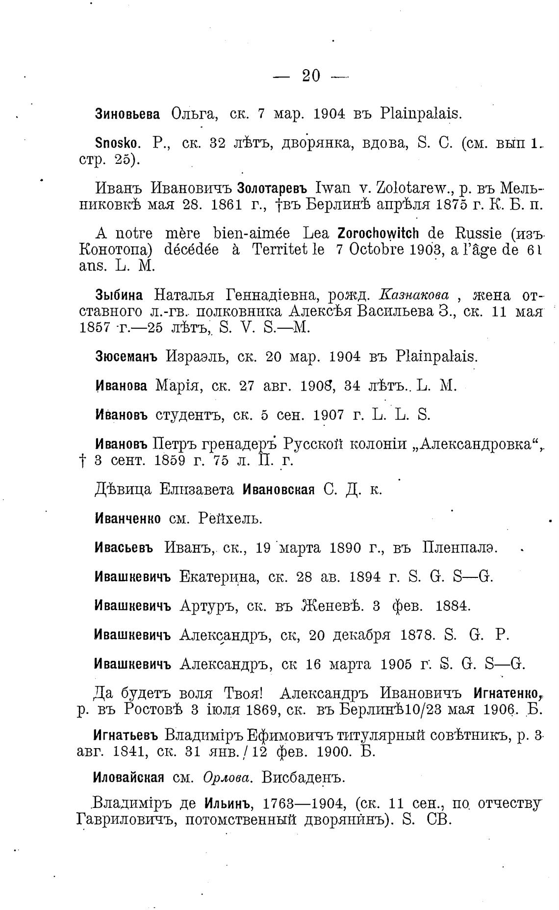Зиновьева Ольга, ск. 7 мар. 1904 въ Plainpalais.