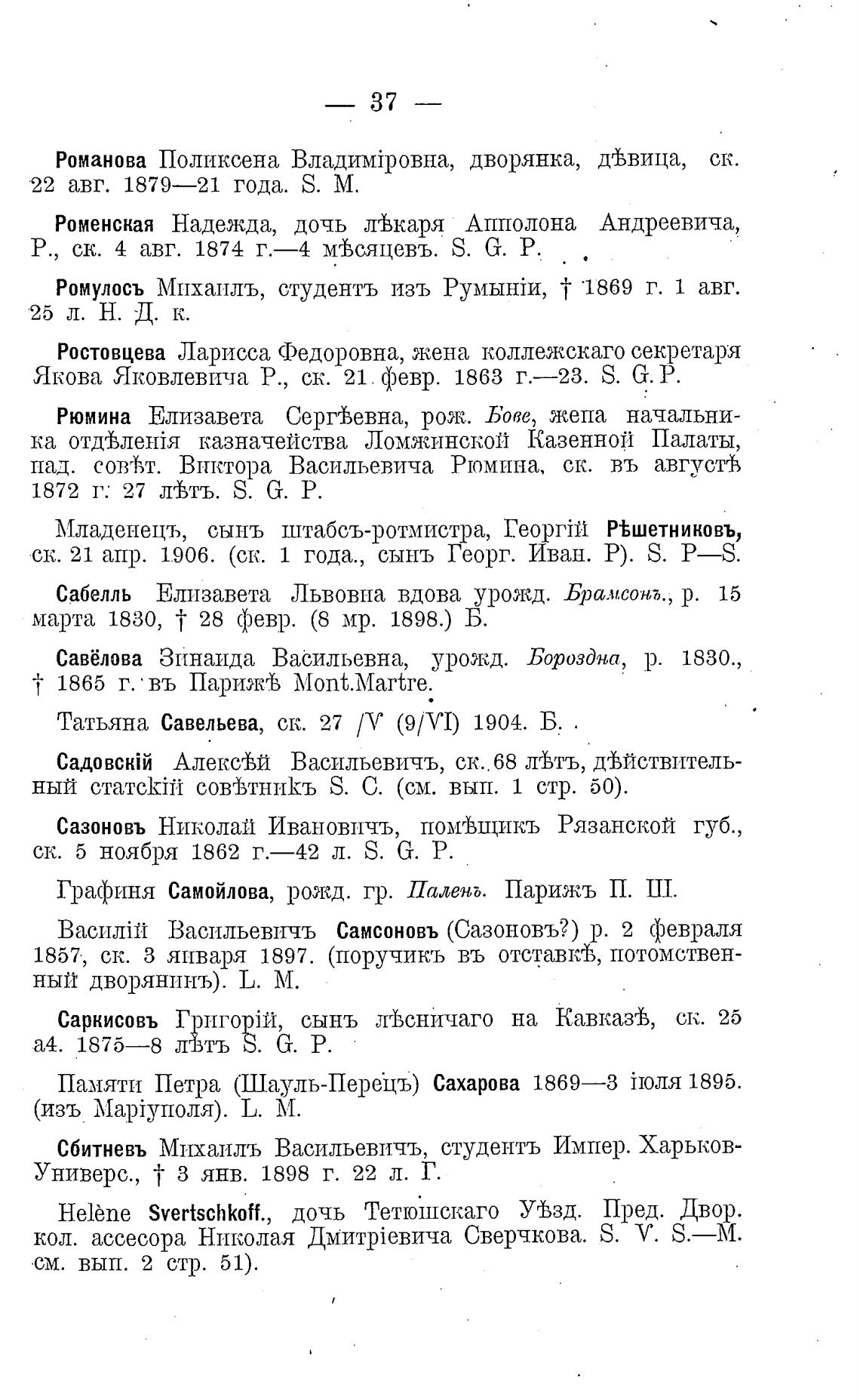 Р., ск. 4 авг. 1874 г.—4 мвсяцевъ. S. G. Р.