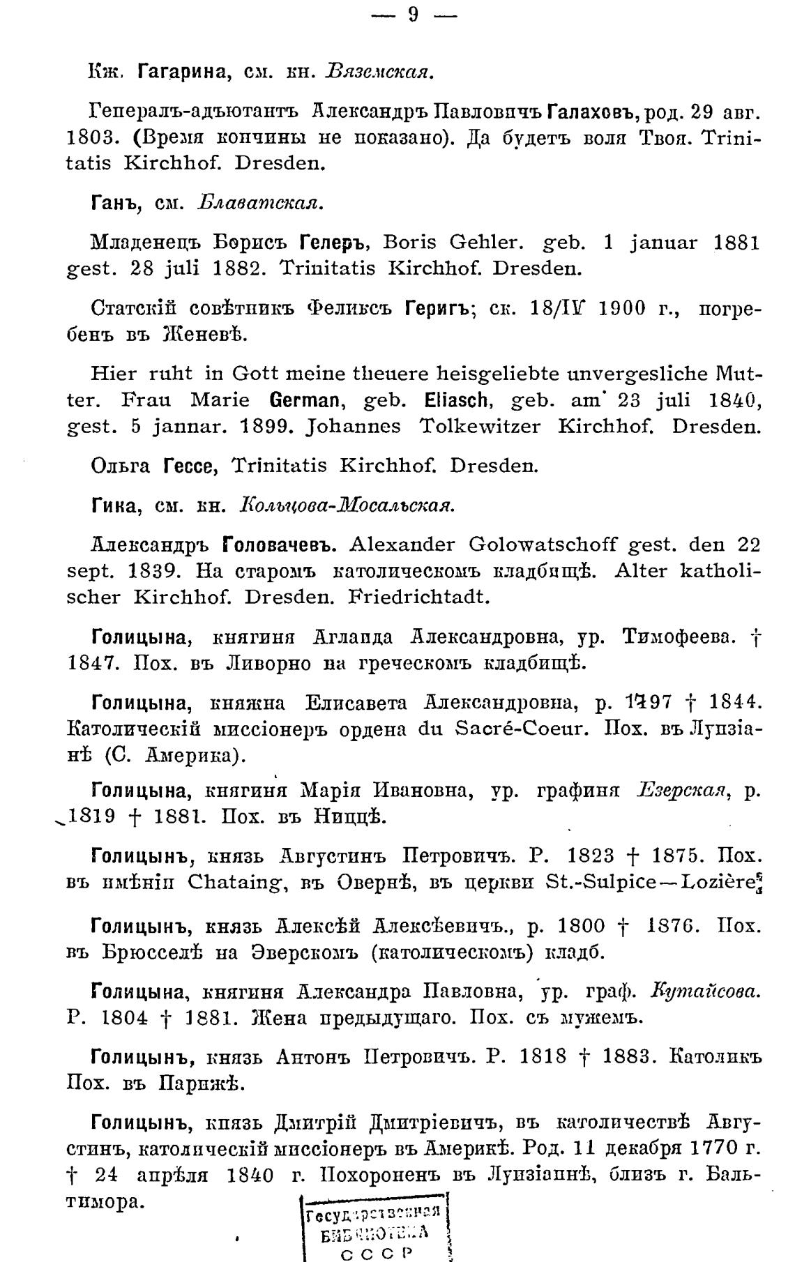 Голицынъ, князь Алексы Алексекевичъ., р. 1800 -1- 1876. Пох.