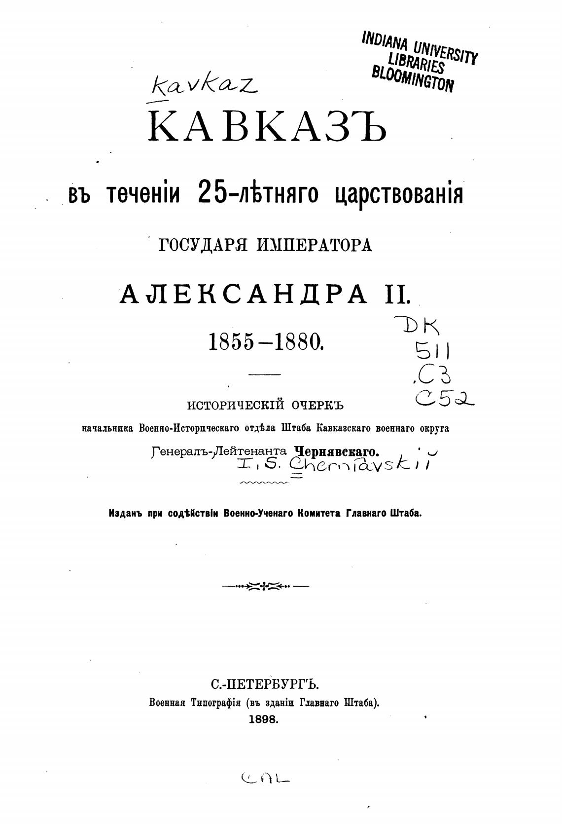 Издань при Военно.Ученаго Комитета Главнаго Штаба.