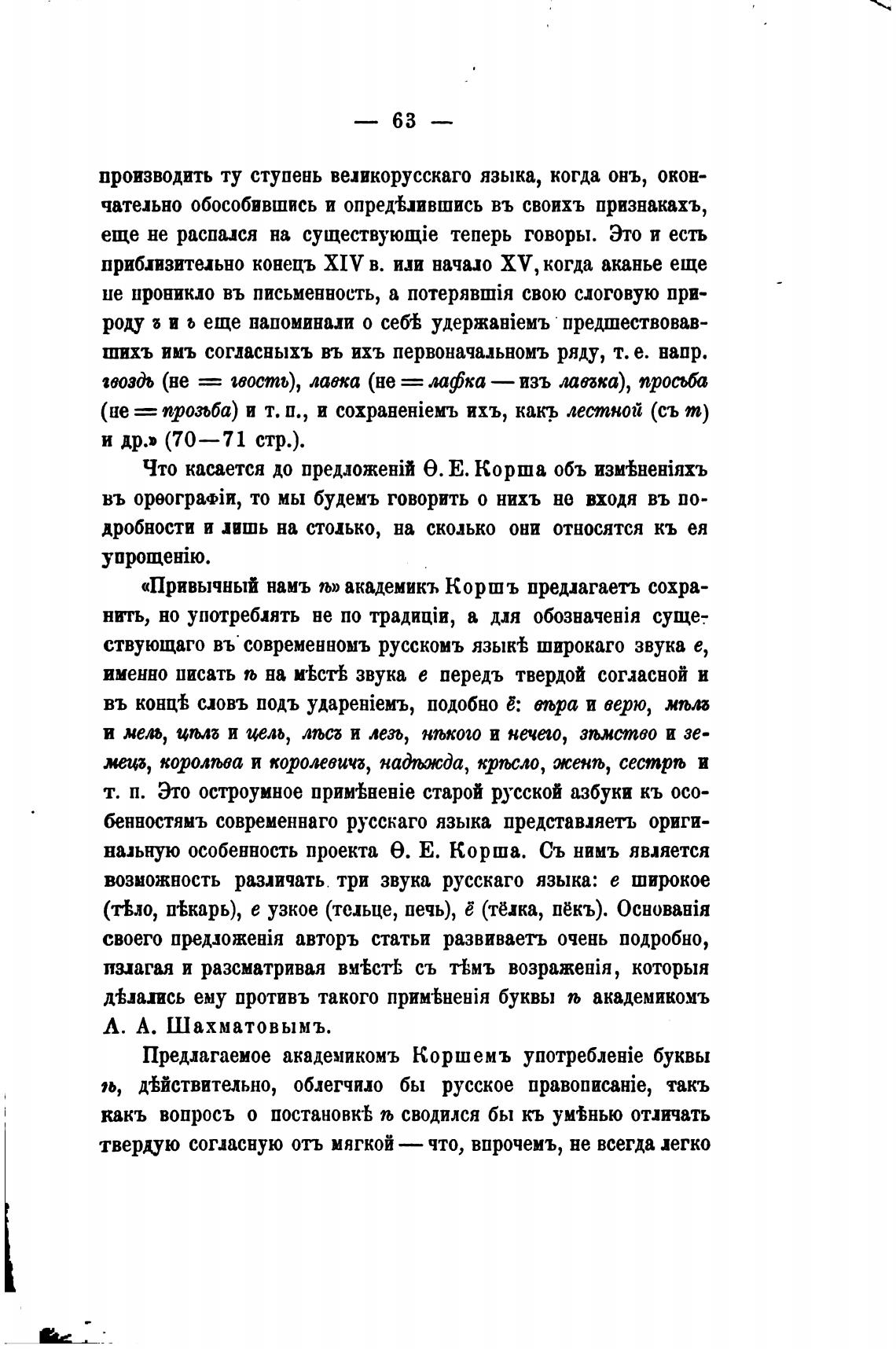 «Привычный намъ љ» академикъ Коршъ предлагаеть сохра-