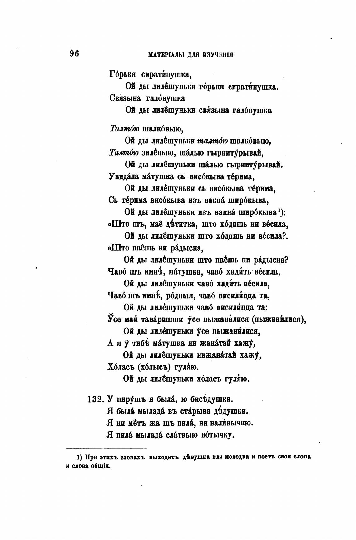 «Што шъ, маЬ дбтитка, што ходишь ни вбила,