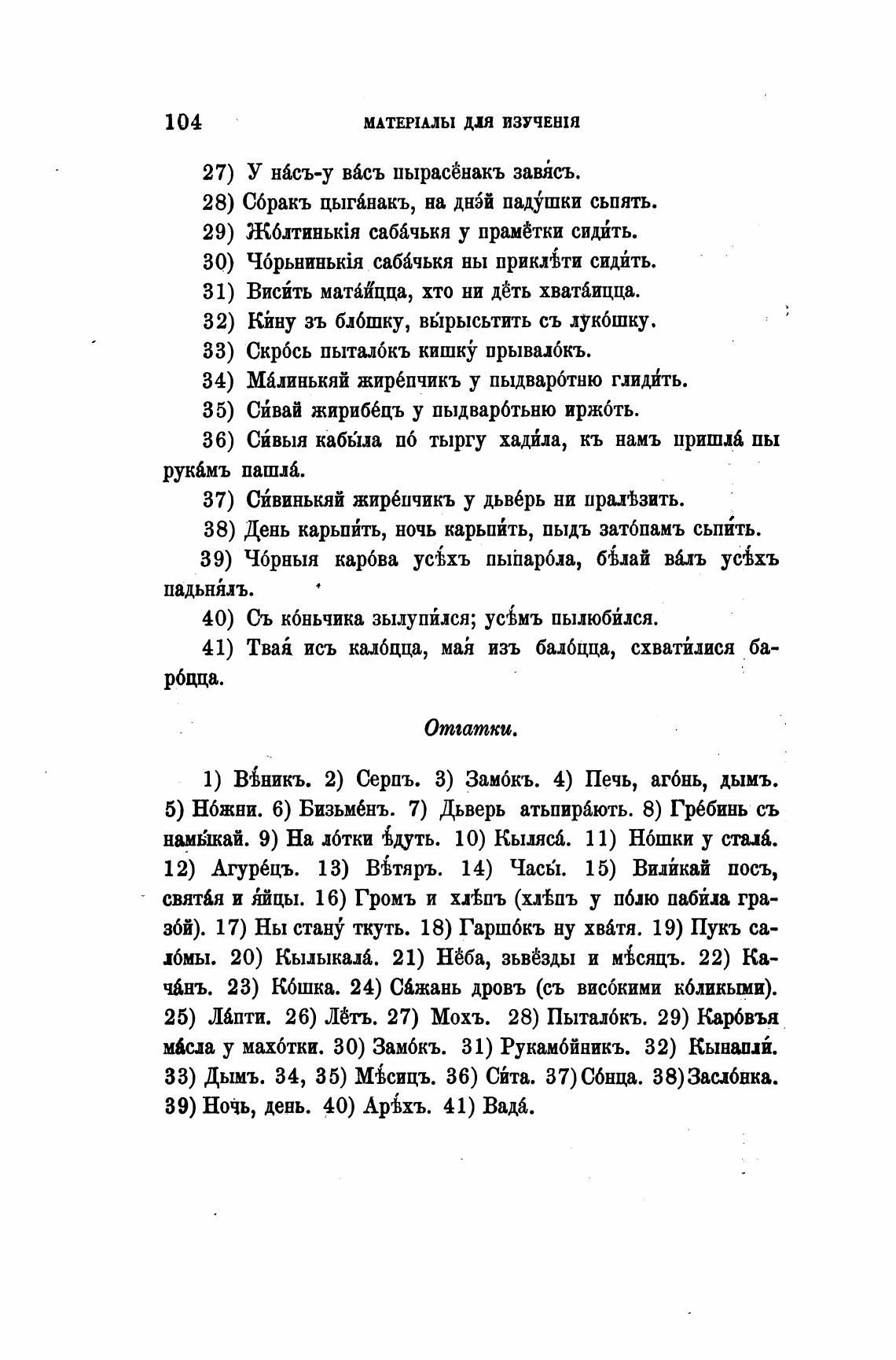 збй). 17) Ны стану ткуть. 18) Гаршбкъ ну хвбтя. 19) Пукъ са-