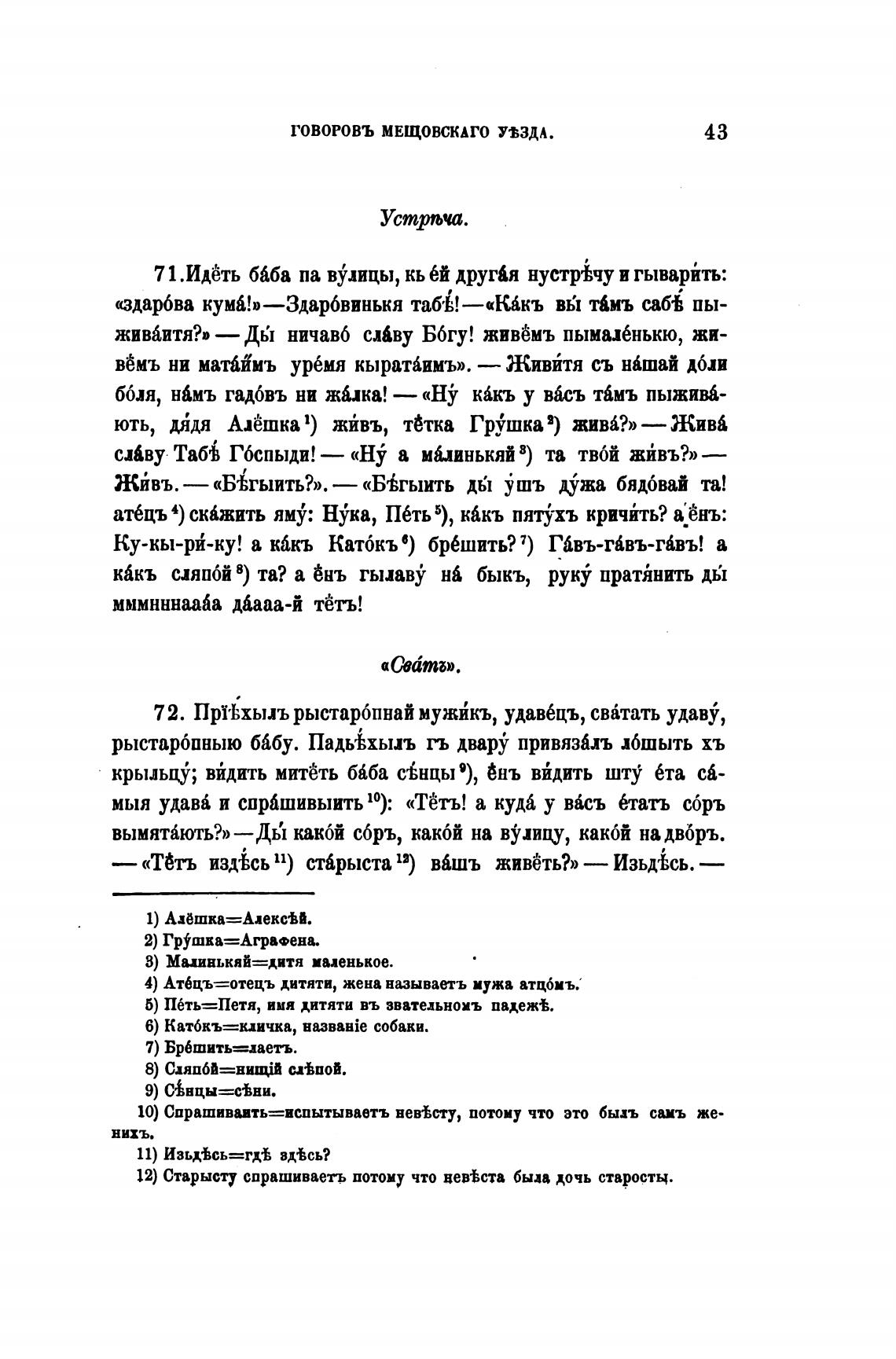 — «Тёть издћсь 11) ст6рыста12) вбшъ живёть?» — Изьд\сь. —