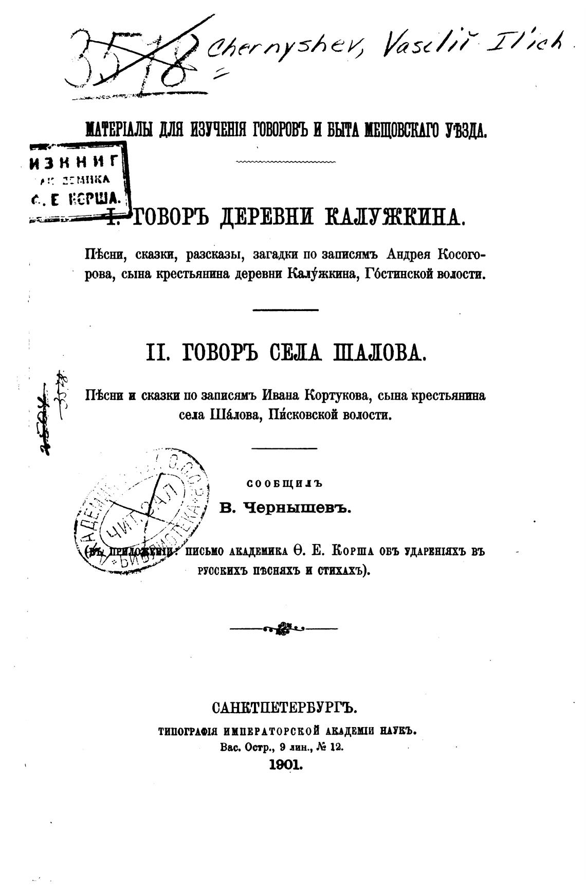 П'Ьсни и сказки по записямъ Ивана Кортукова, сына крестьянина