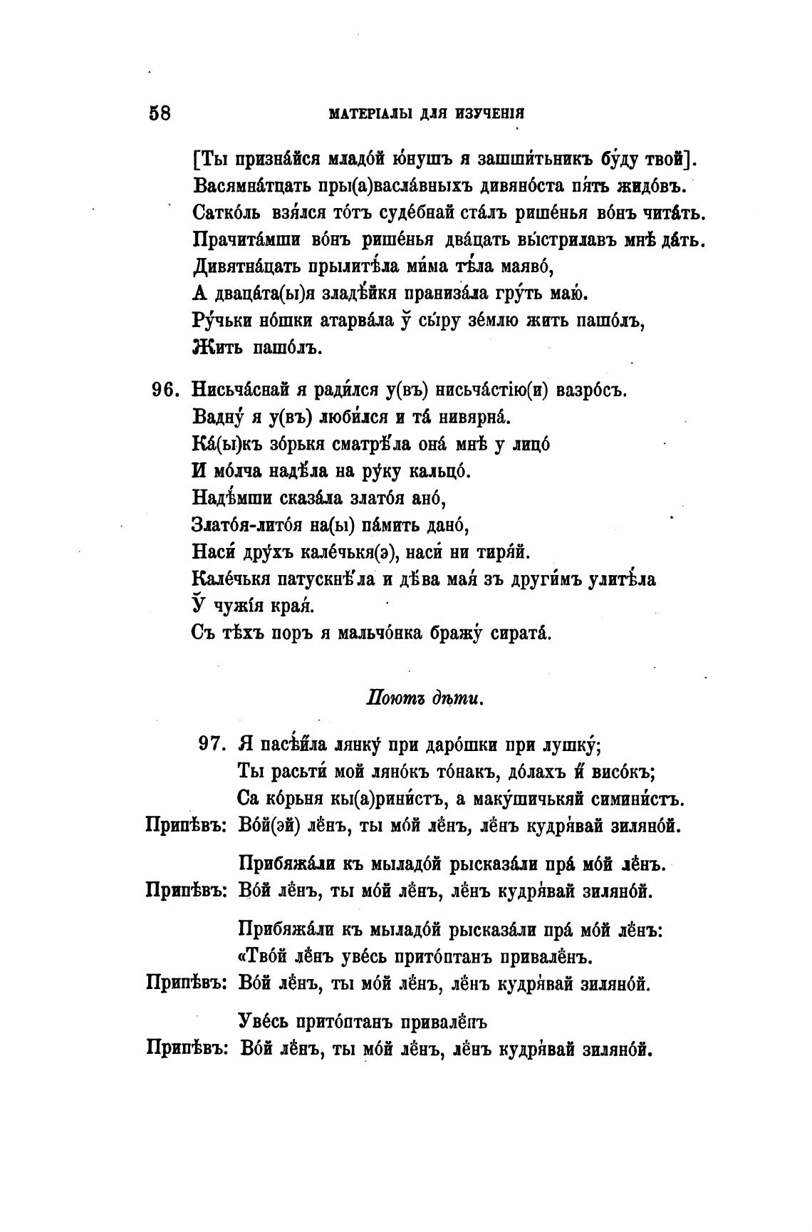 Прип±въ: Вбй лёнъ, ты мбй лбнъ, Лёнь кудрАвай зилянбй.
