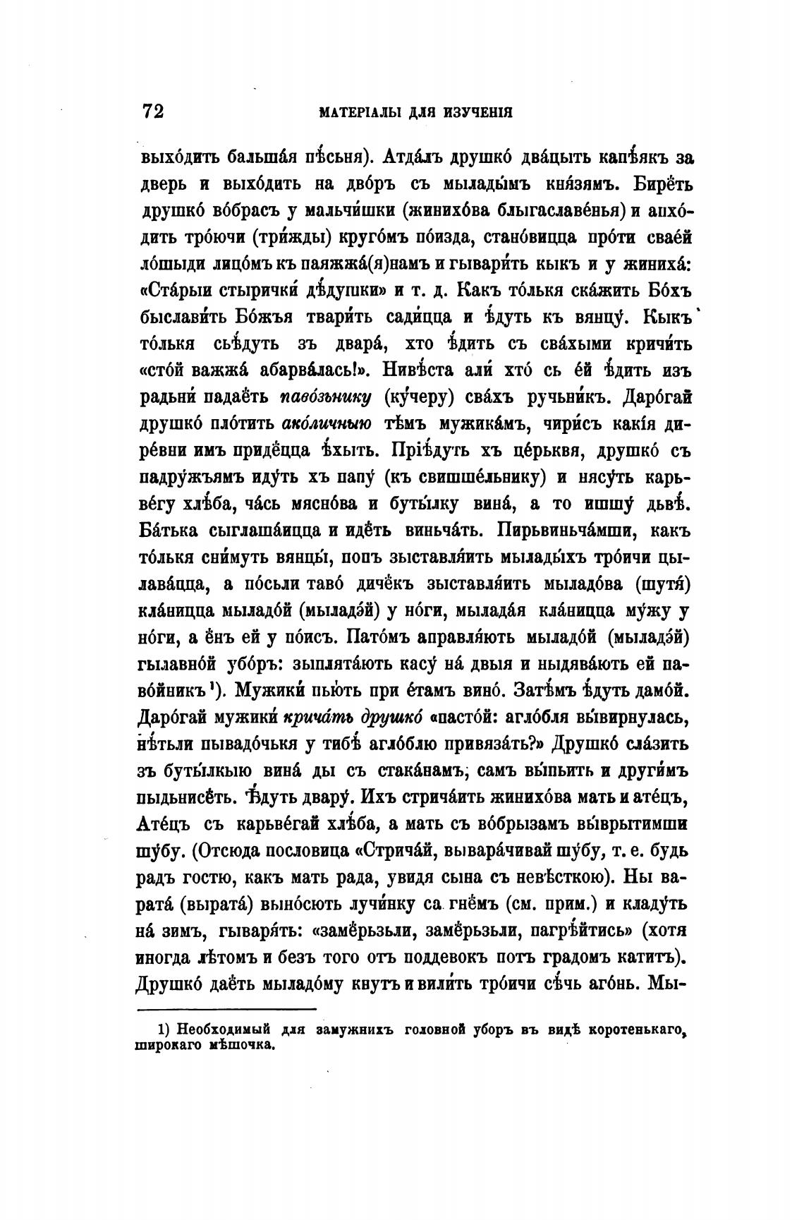 1) Необходимый для замужнихъ головной уборъ въ вид•Ь коротенькаго,