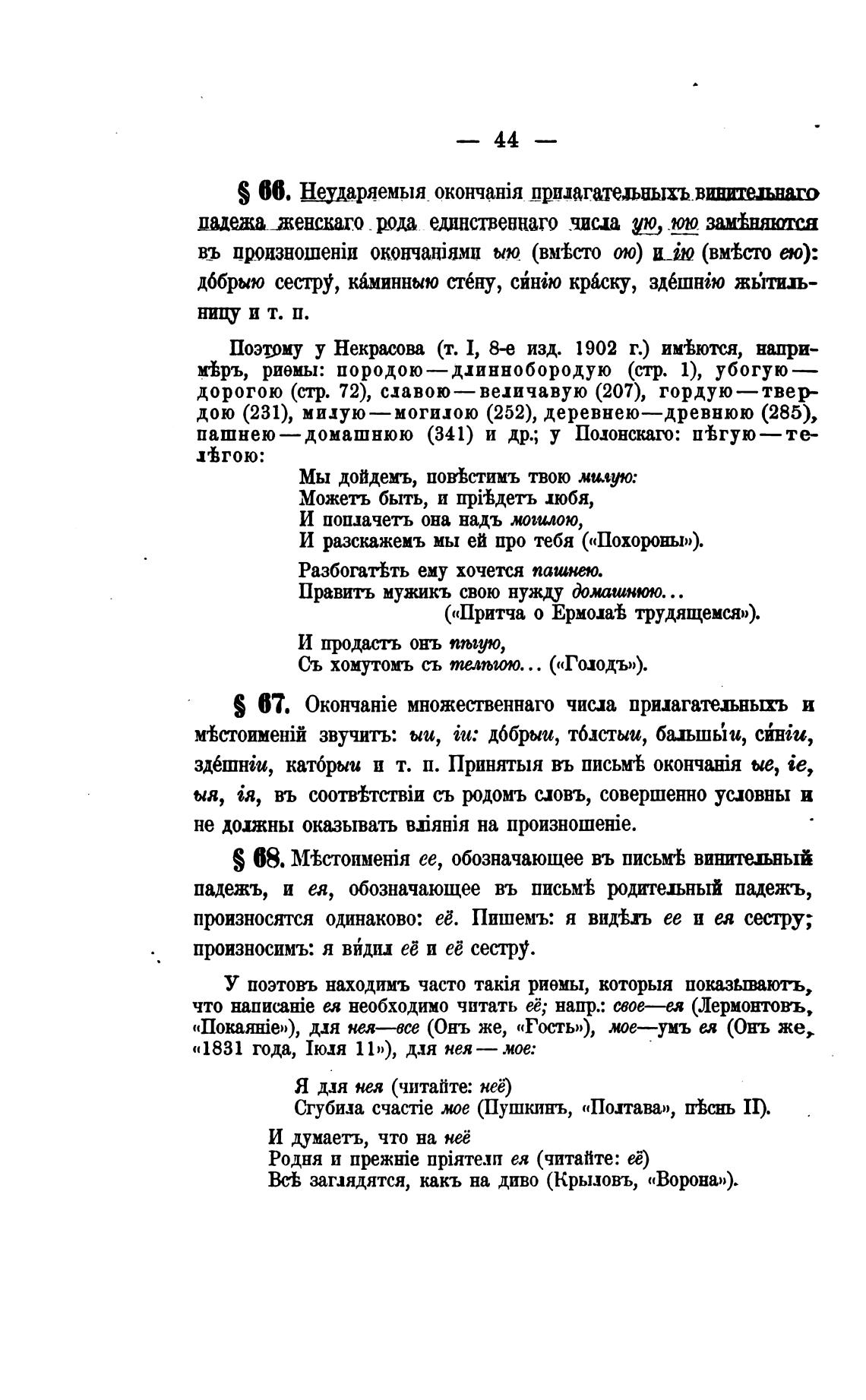 что и необходимо читать её; напр.: свое—и (Лермонтовъ,