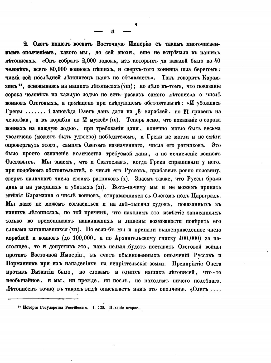 Карамзина о числеЬ воиновъ, отправившихся съ Олегомъ подъ Царьградъ.