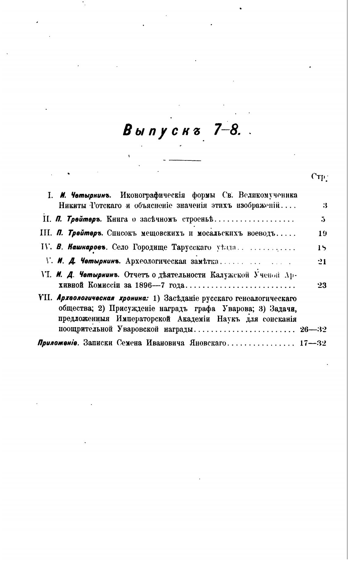 П. Трейтеръ. Списокъ мещовскихъ и мосиьскихъ воеводъ....