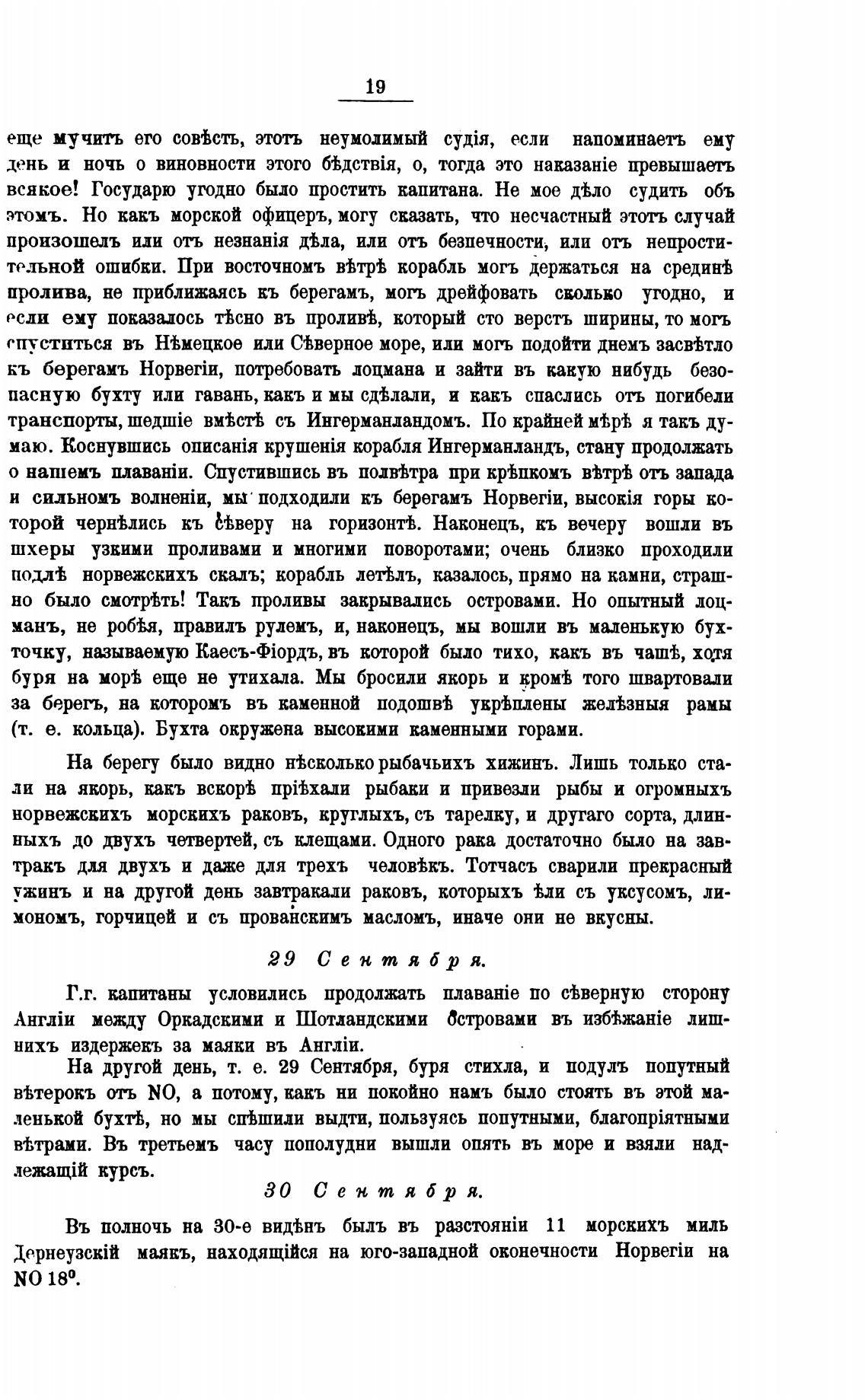 На другой день, т. е. 29 Сентября, буря стихла, и подулъ попутный