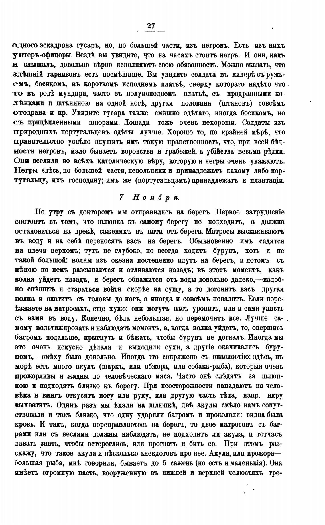 Негры зд%сь, по большей части, невольники и принадлежать какому либо пор-