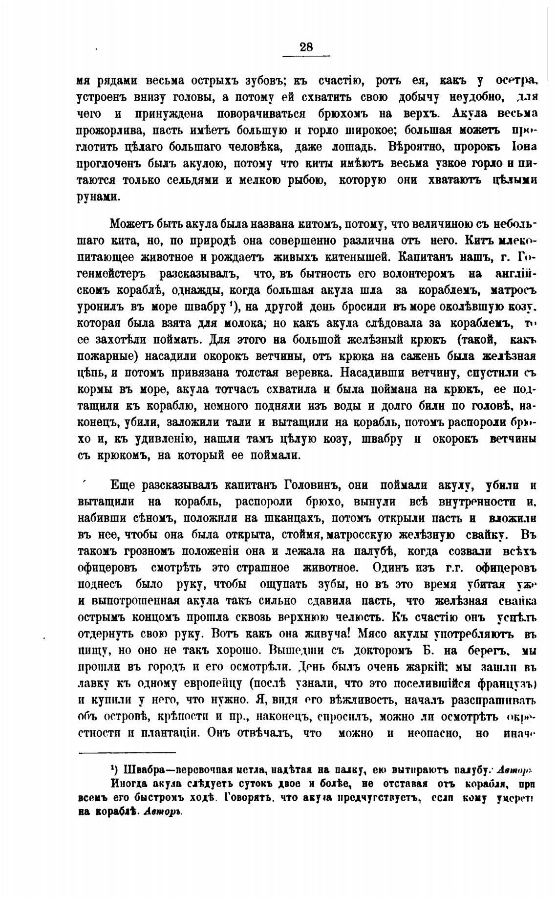 Еще разсказывиъ капитанъ Головинъ, они поймали акулу, убили и