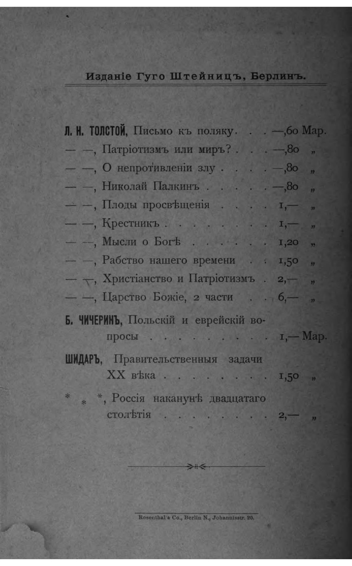 Изданће Гуго Штейницъ, Берлинъ.