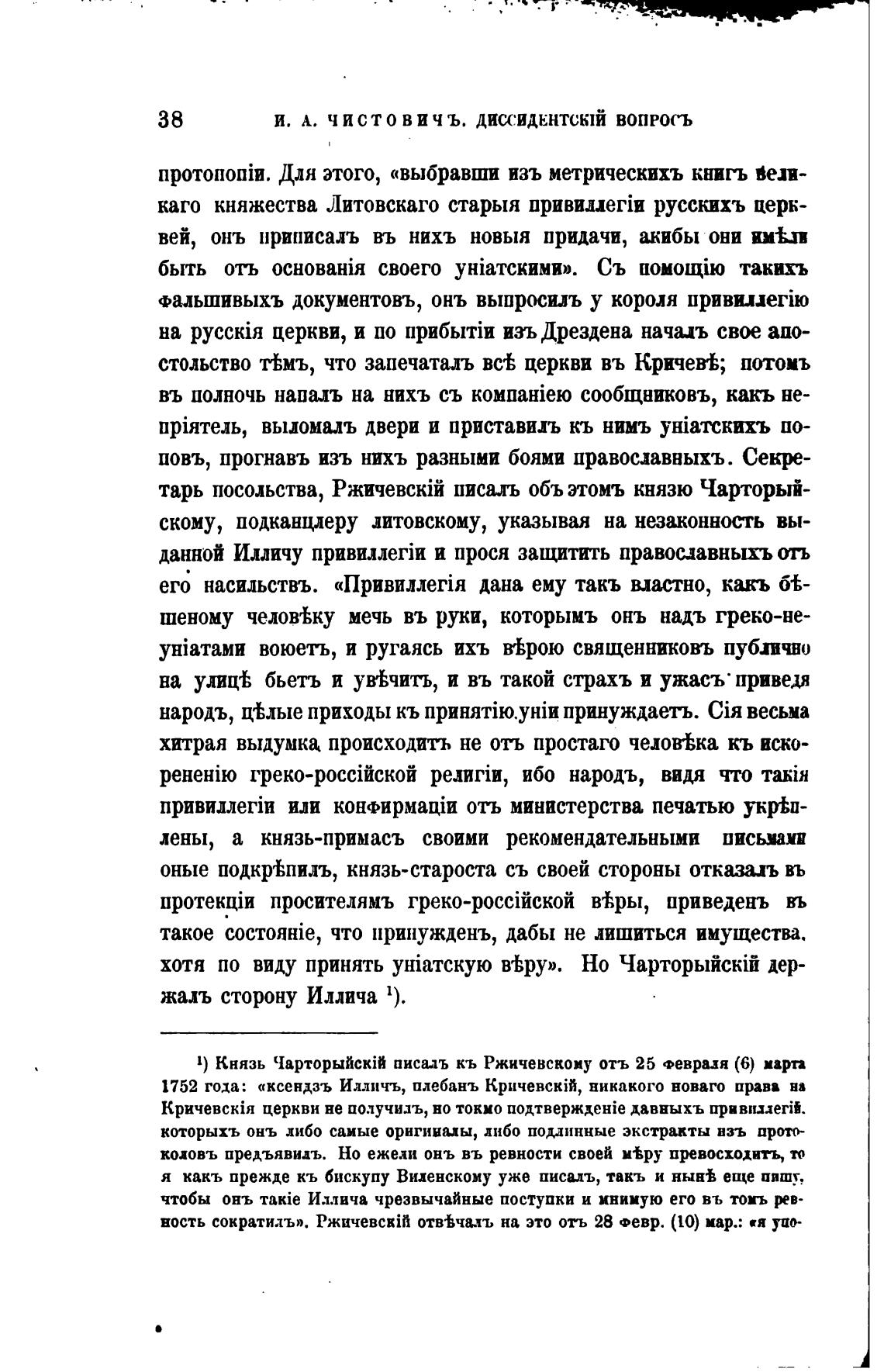 И. А. ЧИСТОВИЧЪ. ДИССИДЕНТСКИЙ вопросъ