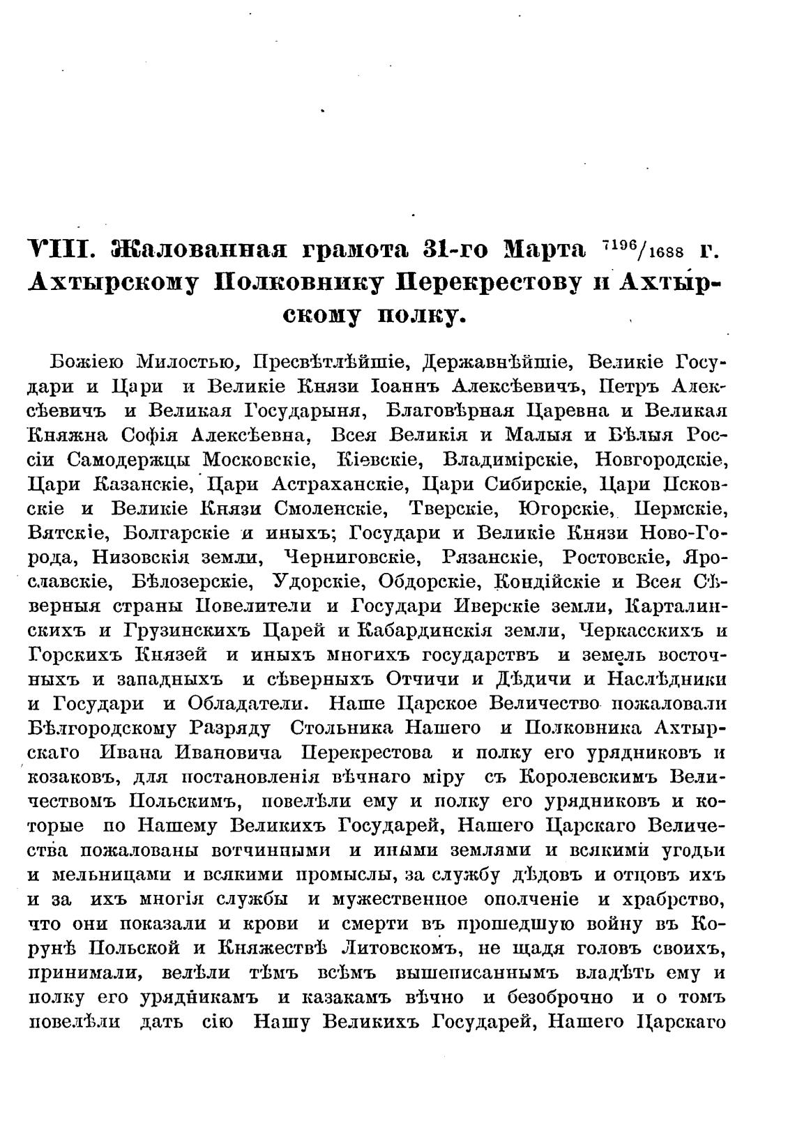 VIII. Жалованная грамота 31-го Марта 7196