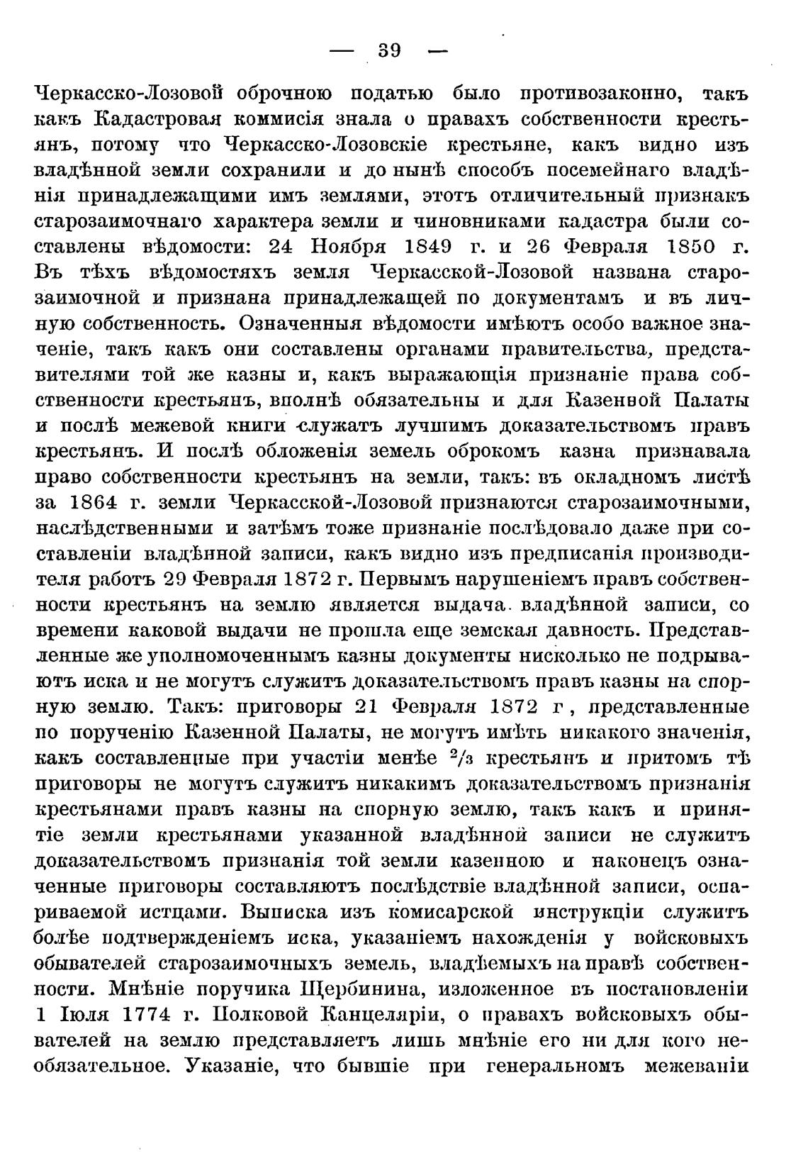 за 1864 г. земли Черкасской-Лозовой признаются старозаимочными,