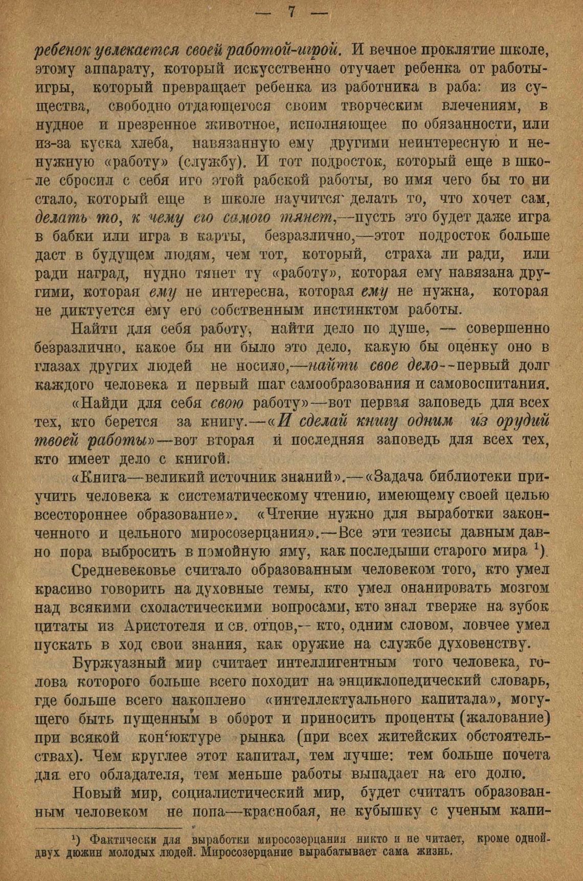 всестороннее образование». «Чтение нужно для выработки законченного и цельного миросозерцания».—Все эти тезисы давным давно пора выбросить в помойную яму, как последыши старого мира х).