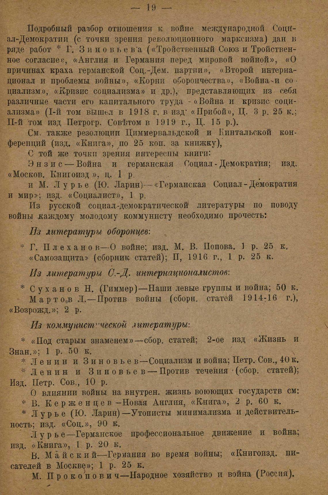 * Л е н и н и З и н о в ь е в—Социализм и война; Петр. Сов., 40 к.