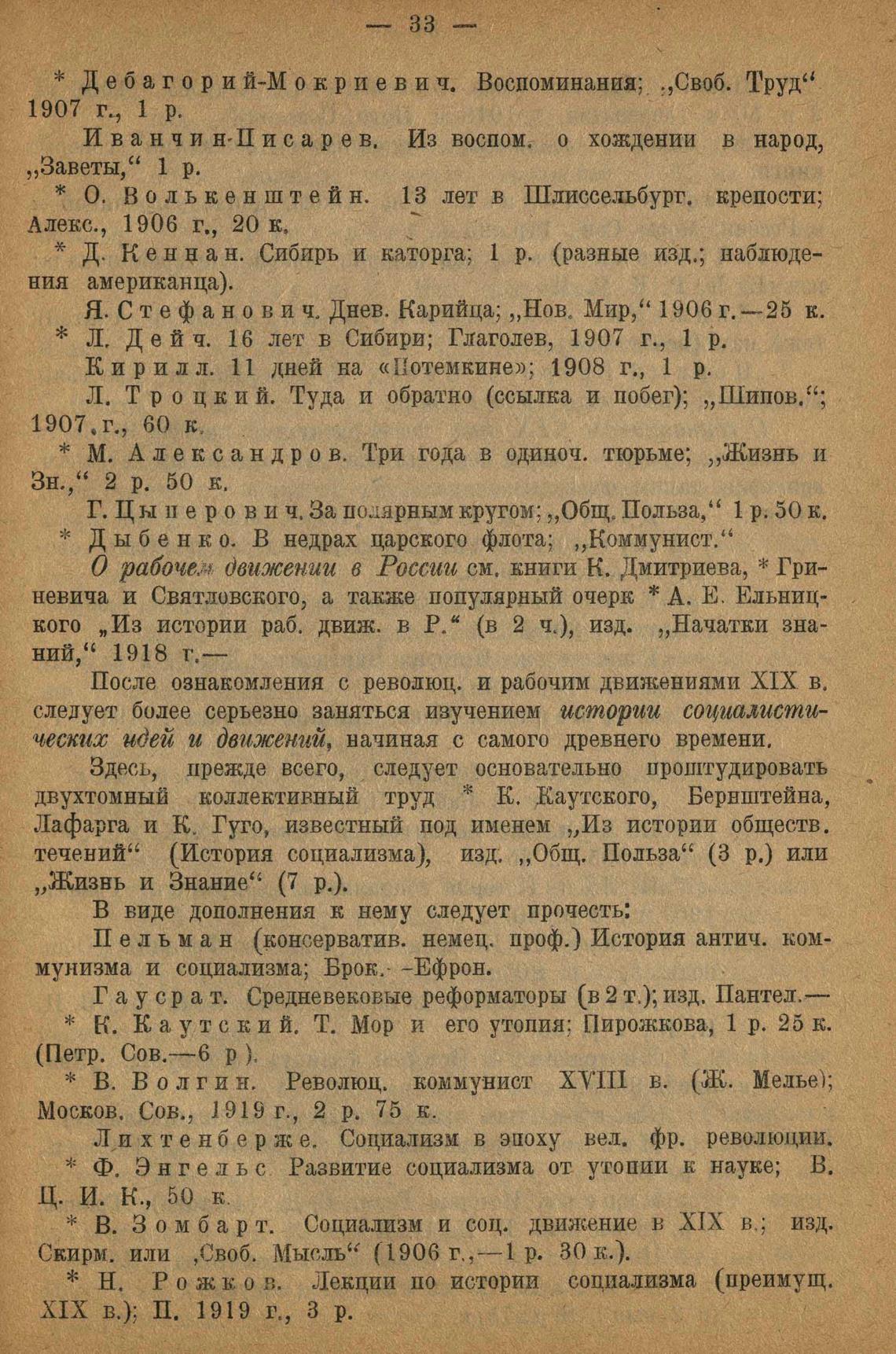 кого „Из истории раб. движ. в Р.“ (в 2 ч.), изд. „Начатви зна-