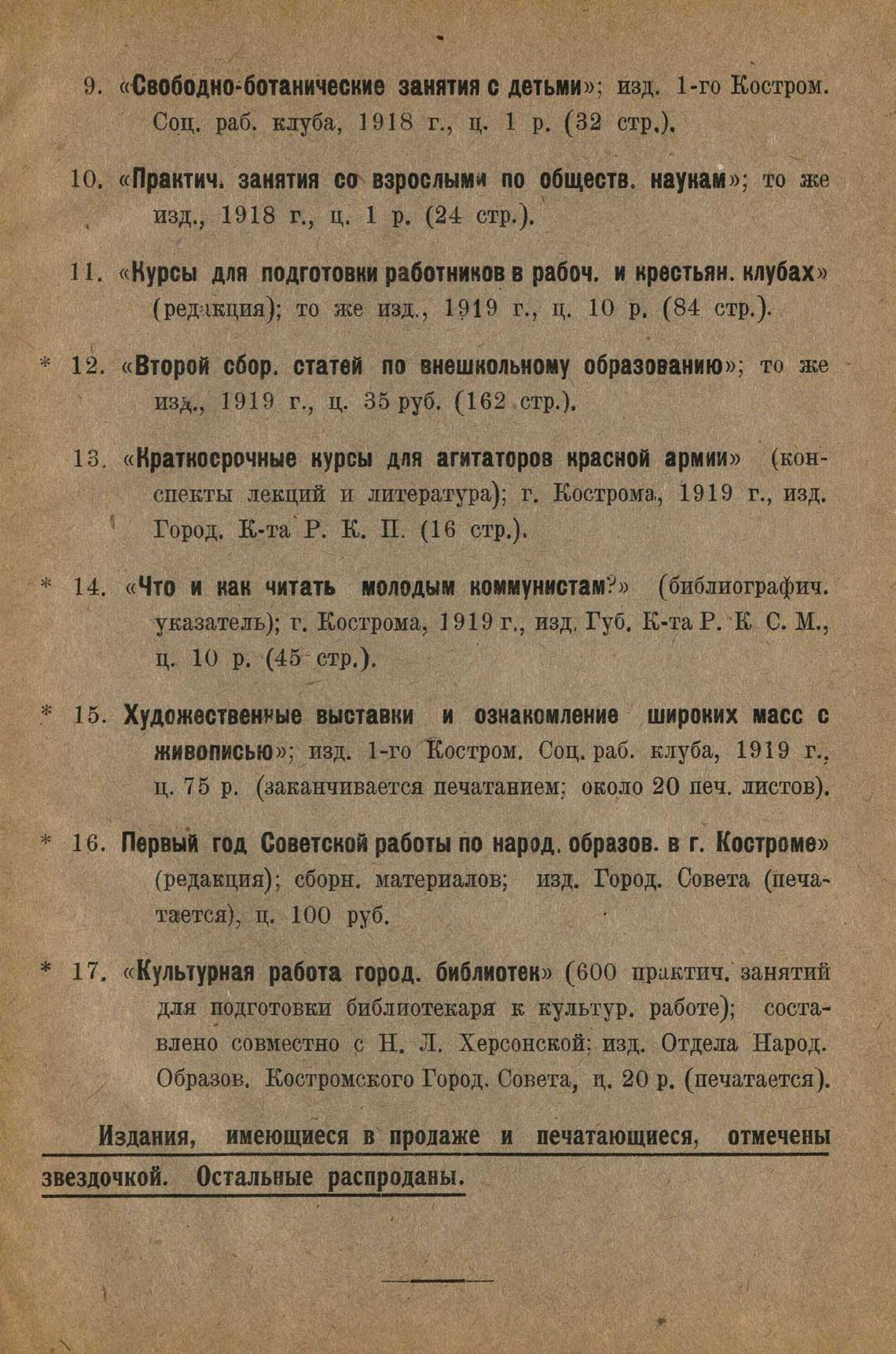указатель); г. Кострома, 1919 г., изд. Губ. К-та Р. АК С. М.,